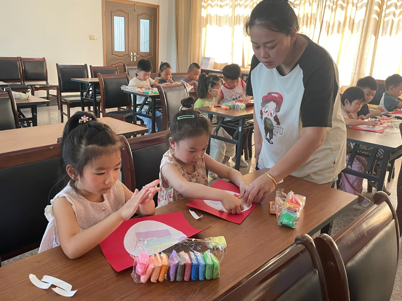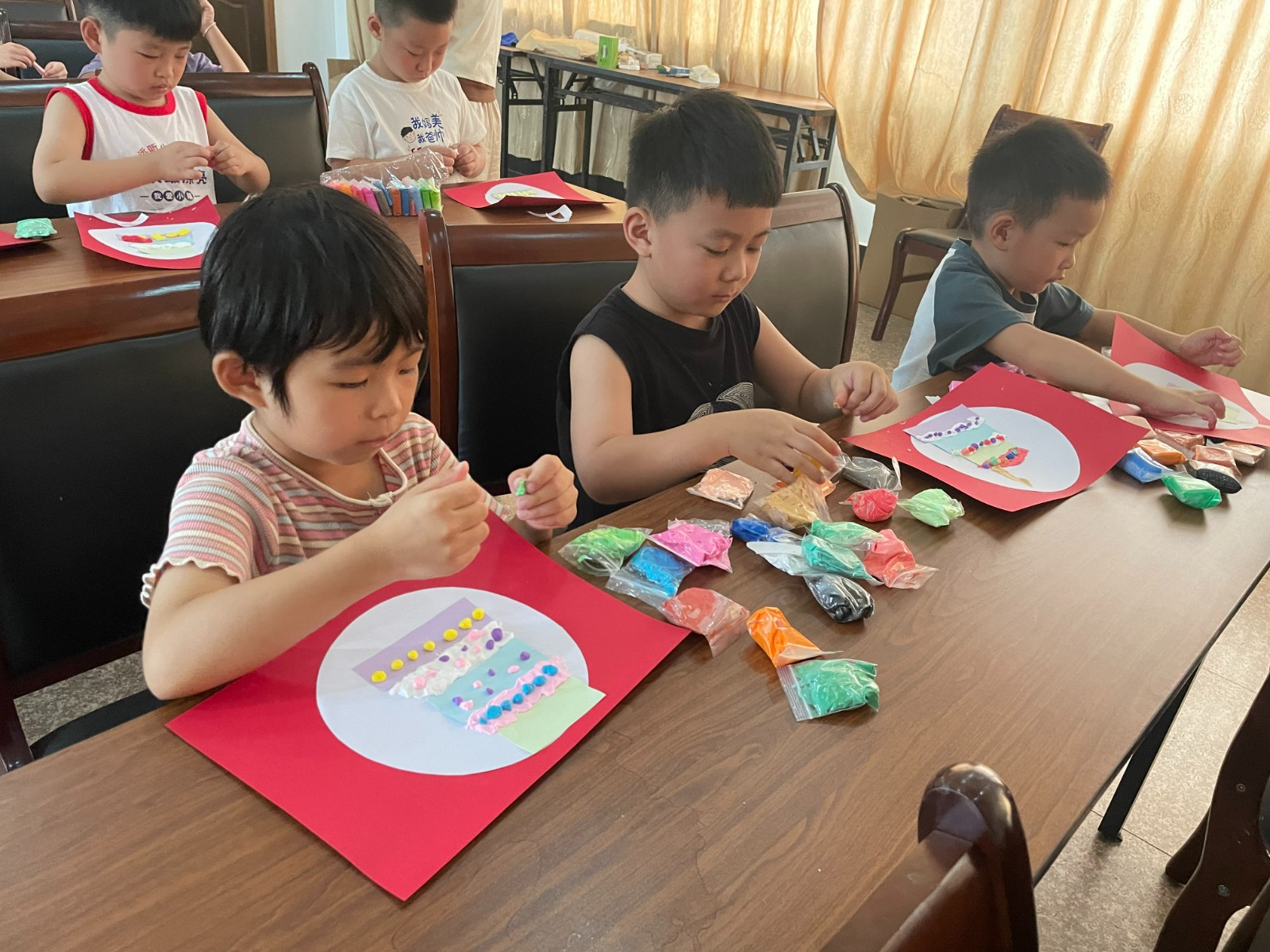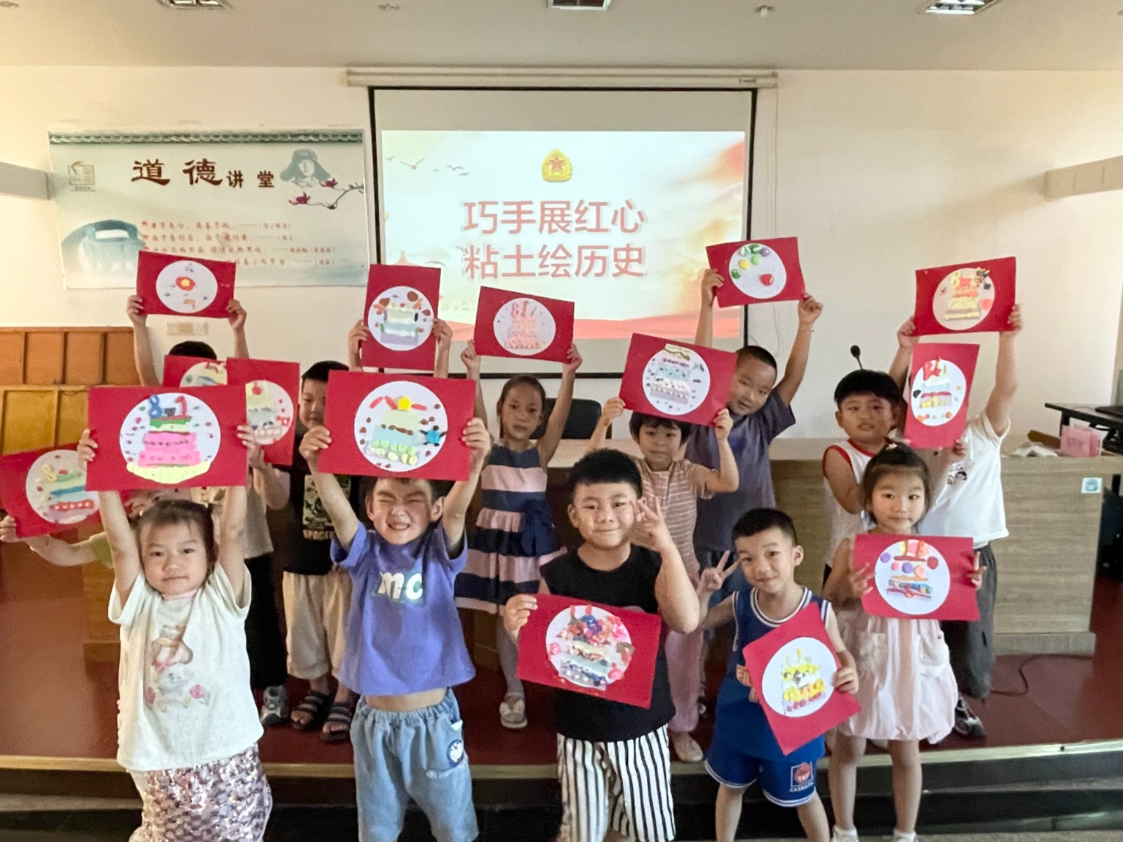 7月30日上午,余三村关工委开展“巧手展红心 黏土绘历史”超轻黏土制作活动,共有16名小朋友参与。