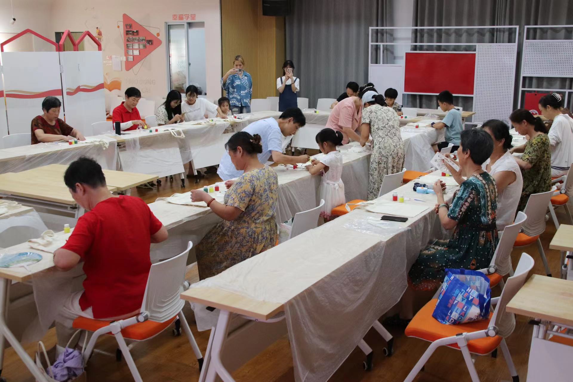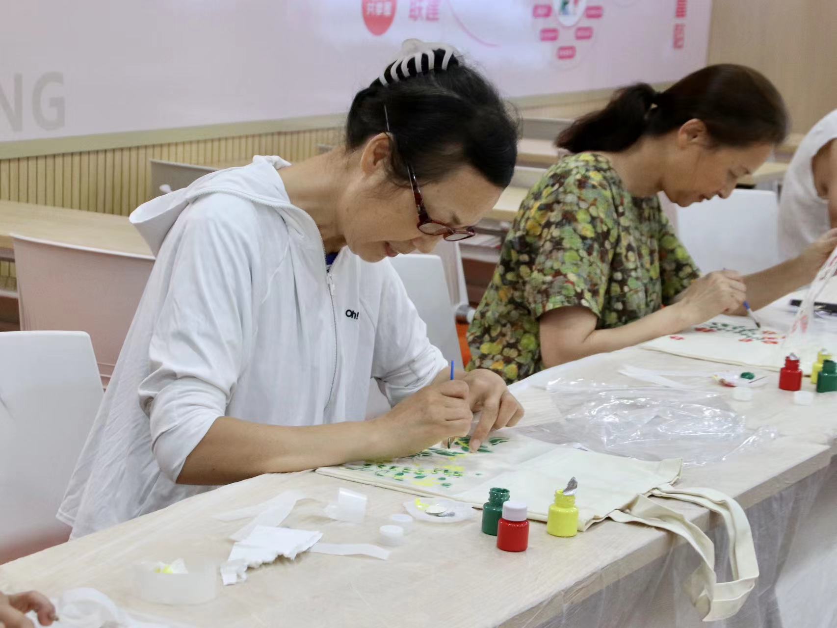 7月30日下午,锦绣社区以染色拓印的形式,邀请辖区居民组织开展“把爱'袋'给党”手工帆布袋制作活动。活动期间,老师在课堂上讲述了建党的光辉历程后,居民开始了帆布袋制作。大家先是用笔沾取一抹桃红,再是用笔尖轻触帆布,随即缓缓游走,一个个原本单调的帆布袋在大家的创作后,逐渐变成满载大家情感与梦想的艺术品,诉说着一段段关于色彩、关于生活的故事。