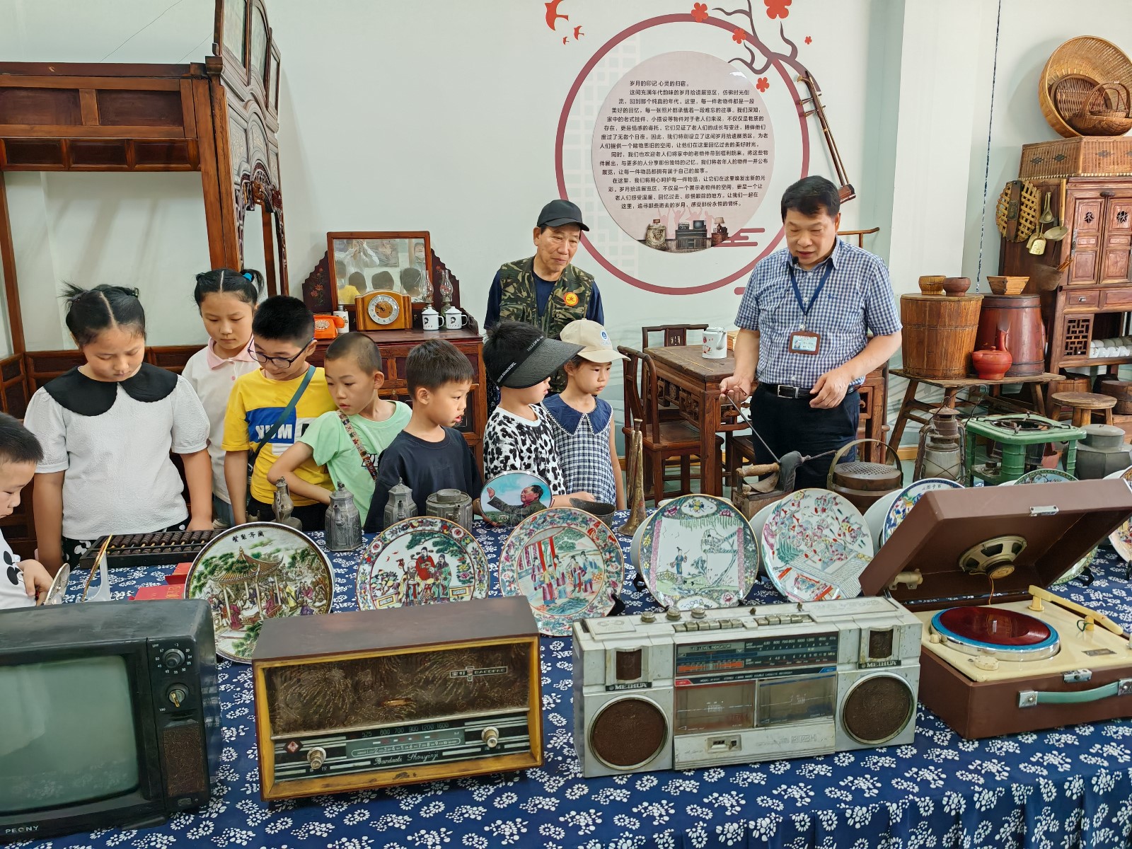 731日,青墩社区党群服务中心组织退伍老兵、暑期假日学校青少年前往小港街道福利院,开展“你好,旧时光”老物件展览参观活动。拔步床、老式钟表、留声机、唱片机……这一个个有鲜明时代烙印、承载着历史变迁和记忆的老物件仿佛再现了以往的生活场景。退伍老兵和青少年跟着解说员的讲解,参观着老物件,走进旧时光,感受那个时代的温度。