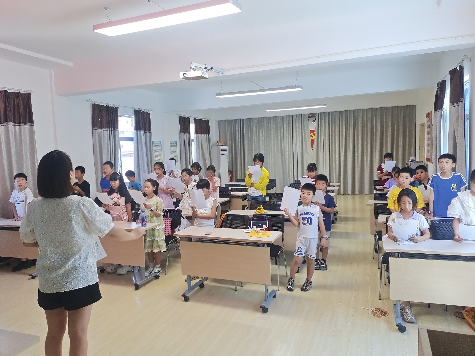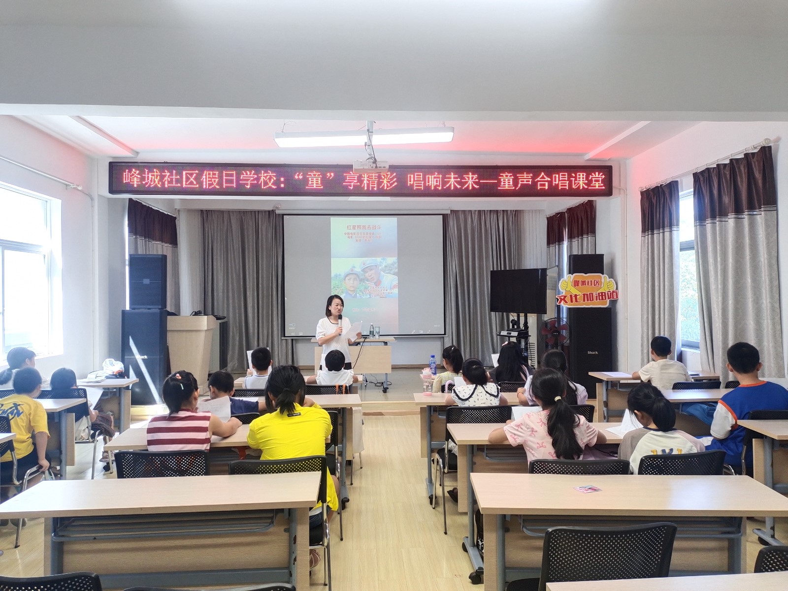 “红星闪闪亮,照我去战斗,革命代代如潮涌,前赴后继跟党走......”为丰富辖区青少年课余文化生活,陶冶情操,培养青少年乐理、乐感和文化素养,营造积极向上的社区正能量氛围,7月31日上午,峰城社区党群服务中心联合新时代文明实践站邀请区文化加油站虞碧芬老师开展“童声里的中国”—“童”享精彩 唱响未来合唱课堂。