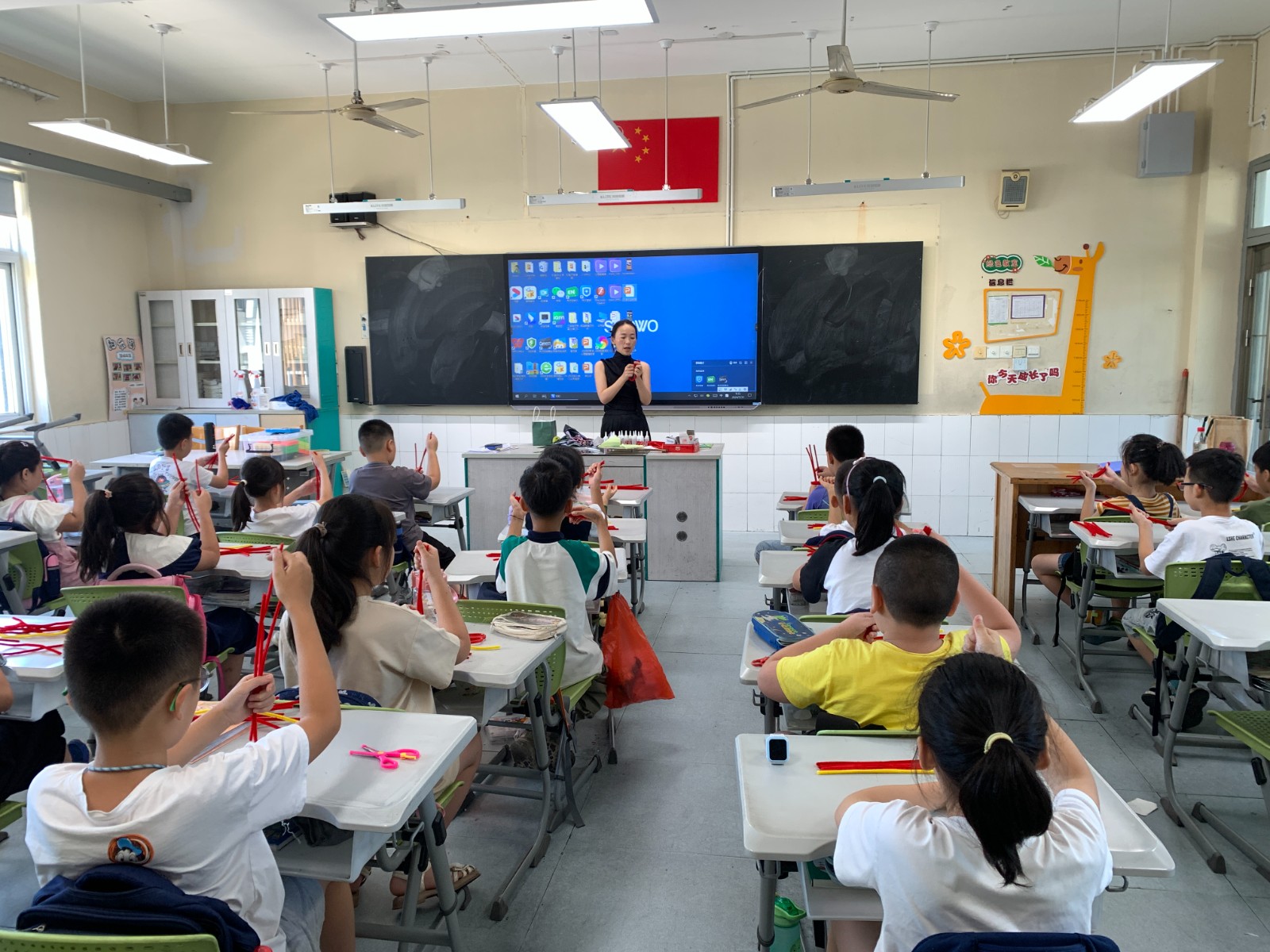 在动手环节,孩子们热情高涨,纷纷拿起手中的扭扭棒尝试着按照老师的指导制作中国结。虽然初学者难免会遇到一些困难,但在老师的耐心指导下,孩子们逐渐掌握了技巧。随着一个个色彩鲜艳、形态各异的中国结在手中逐渐成形,孩子们的脸上洋溢出自豪的笑容。