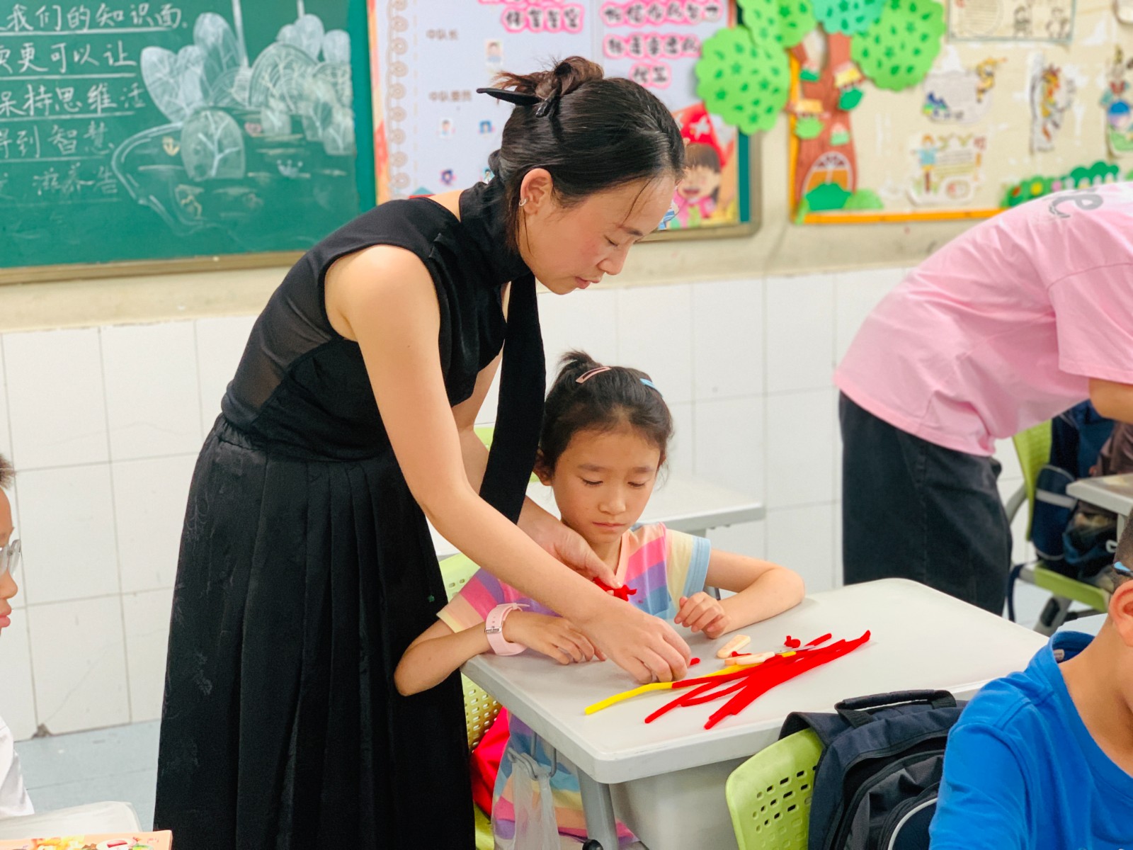 7月31日上午,在芦中社区假日学校内,来自北仑区文化加油站的王慧琳老师为学生们带来了一场别样的手工课——用扭扭棒制作中国结。这堂课不仅让孩子们体验到了传统手工艺的魅力,还加深了他们对中国传统文化的理解。