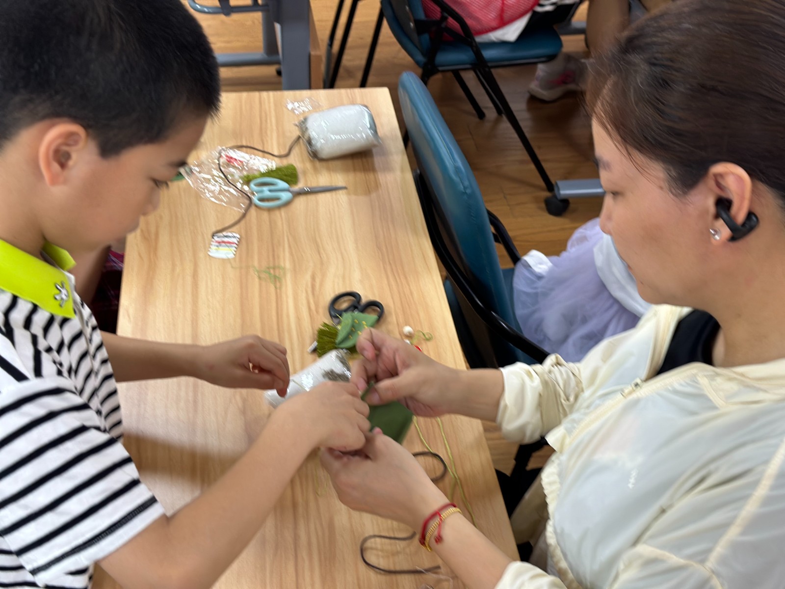 在老师和志愿者的耐心指导下,孩子们小心翼翼地穿针引线,封边翻袋,每一步都充满了对传统文化的敬畏和热爱。不一会儿,一个个精致可爱的古风莲蓬香囊便呈现在大家面前,香气扑鼻,令人赏心悦目。