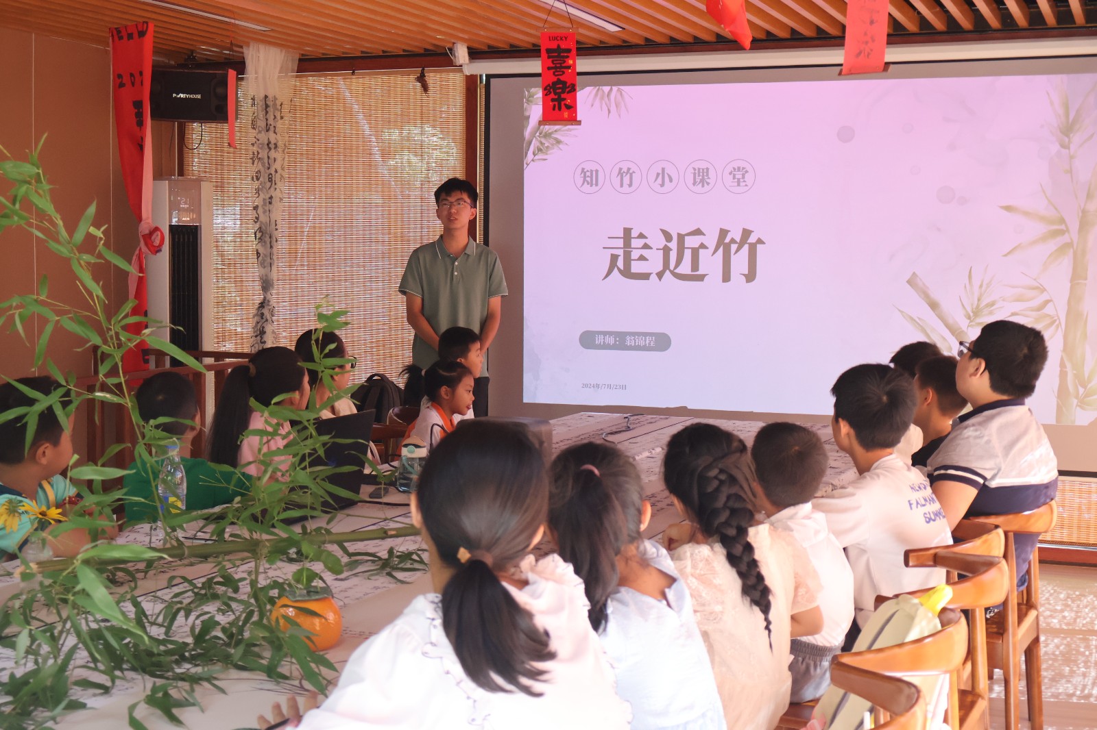 知竹小课堂上,翁老师从竹之形、竹之用、竹之文、竹之性等四方面向孩子们详细介绍了竹编艺术的历史渊源和独特魅力,让他们对这项古老的技艺有了初步而全面的认识。通过生动的讲解和丰富的图片展示,孩子们仿佛穿越时空,亲身体验了匠人们对美的追求和对技艺的执着。