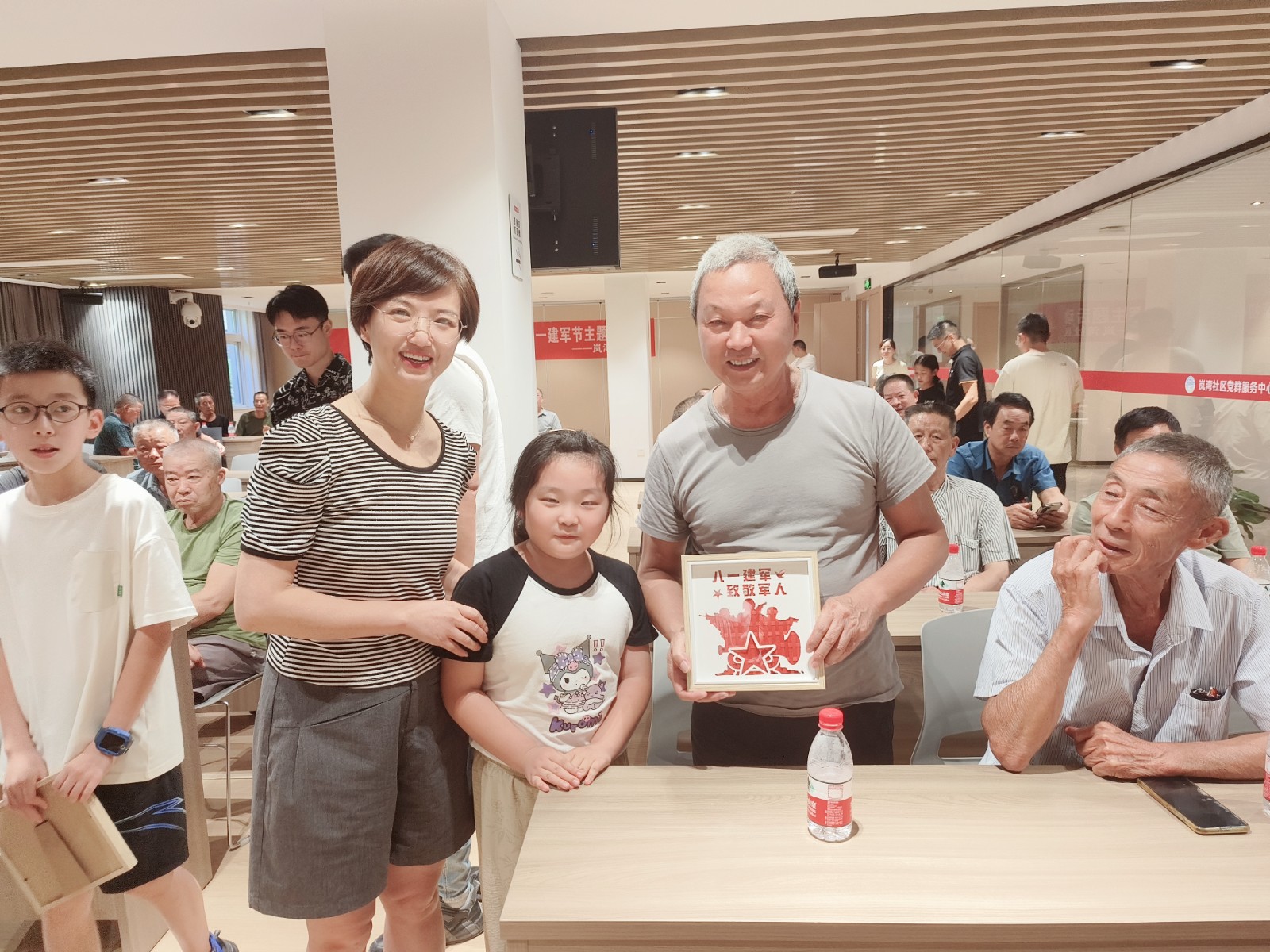 沈老声情并茂地讲述了自己参军梦想的由来、应征入伍的一些事迹,还分享了自己退伍后积极参与社区建设的经历。言语中展露的初心、团结感人的战友之情,都让在座的老兵和孩子们仿佛置身当时的炮火硝烟中,大家都被深深震撼和感动了。为了感恩老兵们的付出,社区给老兵们准备了一份慰问品,20余位孩子们在社工的带领下亲手制作竹编画送给老兵作为八一的礼物。接过这一份特殊的礼物,老兵们都内心暖暖的。这是一场新老交替、前江后浪的传承!