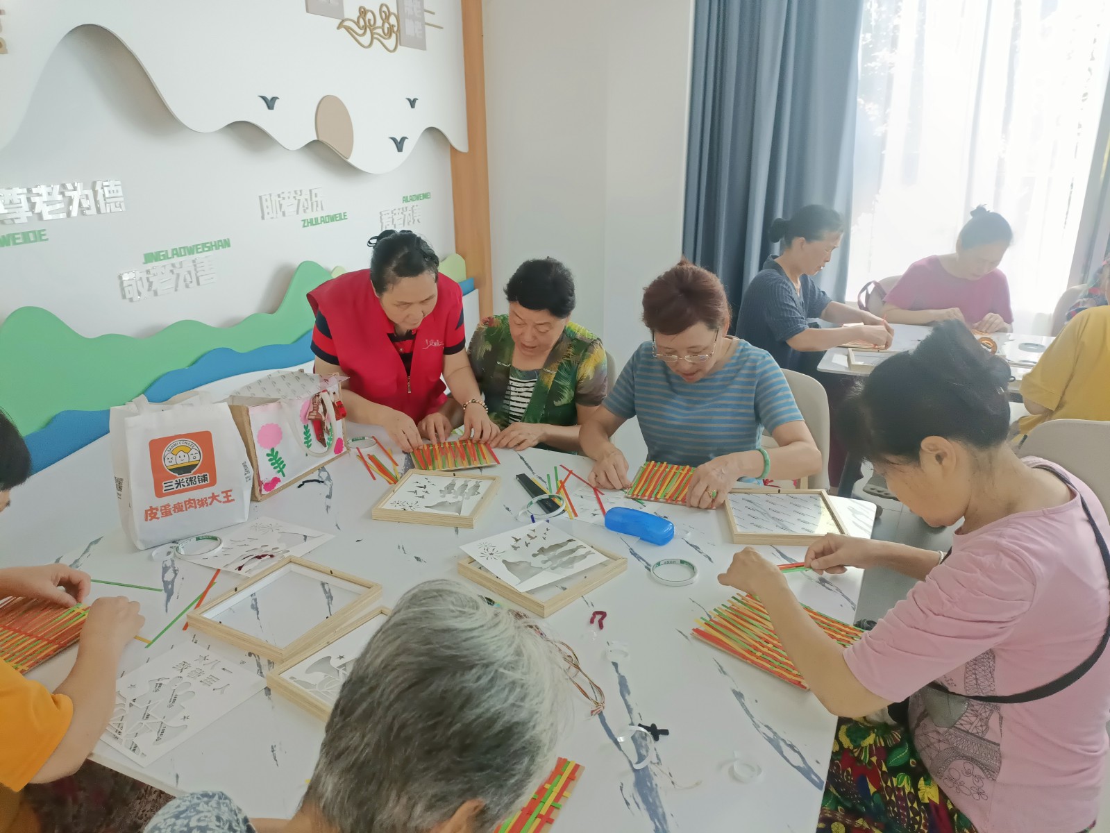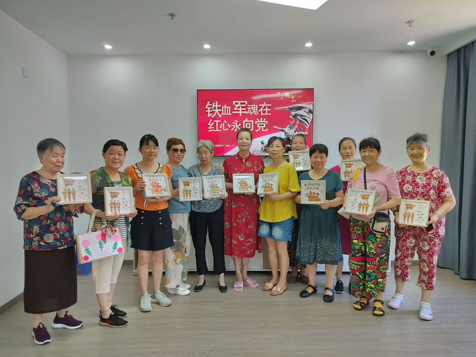 在八一建军节当天,庄桥街道天沁社区党委组织了社区女性老党员在居家养老服务中心开展了“锦绣盛世 砥砺前行”建军节竹编画活动,致敬最可爱的人。