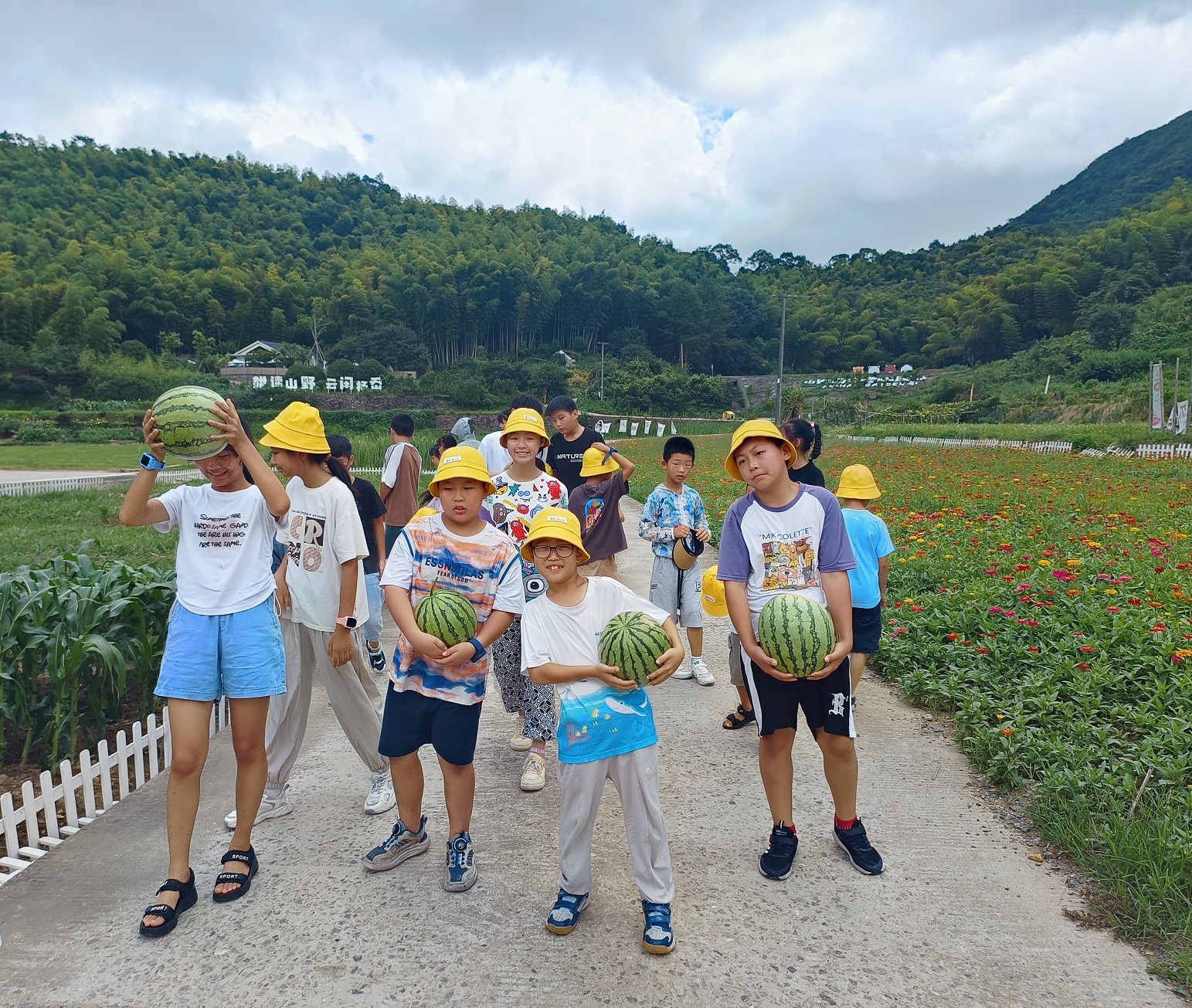 一大早,来自邻舍家假日学校的同学们便在社区网格员、“五老”人员、宁波职业技术学院机电工程学院志愿者的陪同下有序上车乘坐。一路上同学们满怀期待,对今天的研学活动感到期待,车上充满了欢声笑语。抵达杨岙村后,一幅幅生动的田园风光映入眼帘,翠绿的稻田、蜿蜒的小径、还有那即将成熟的西瓜地,瞬间激发了孩子们探索自然的好奇心。
