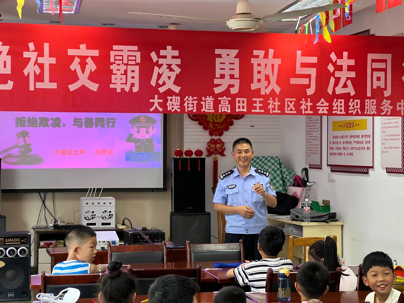 反对校园霸凌给孩子们一个安全的校园环境。对于反对欺凌高田王社区一直再坚持做相关安全教育。82日高田王社区邀请了辖区内的派出所民警冯警官来给假日学校的同学们做反霸凌安全教育。