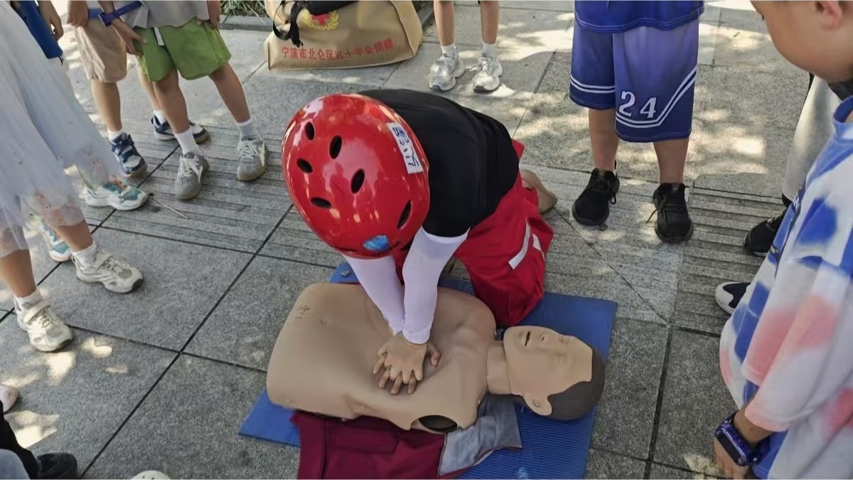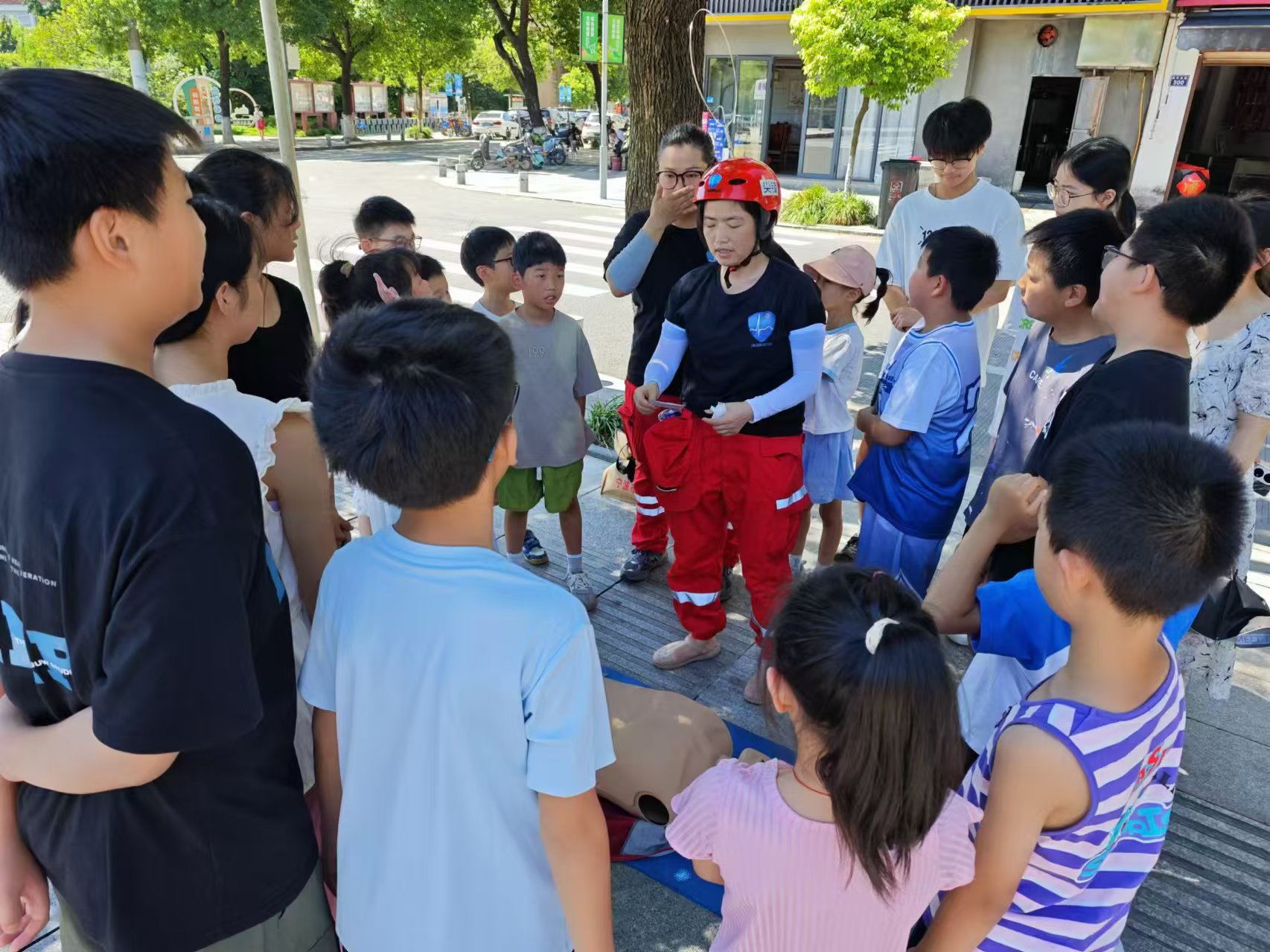 本次演练针对落水者,进行了救援打捞杆、救生圈等工具的使用科普,以及把落水者救至岸上后的急救技能培训。整个演练过程快速、有效、有序,救生员之间相互配合准确默契,并具有针对性和专业性,有力保障了意外受伤者和溺水者第一时间得到救援。演练现场,救生队员手把手地教学生们心肺复苏按压手法以及开展人工呼吸的技巧等急救技能,让学生们尝试进行练习,熟悉急救技巧。同时还讲解了防溺水安全知识及发生溺水情况时如何施救等问题。