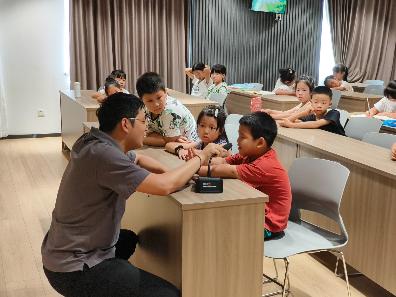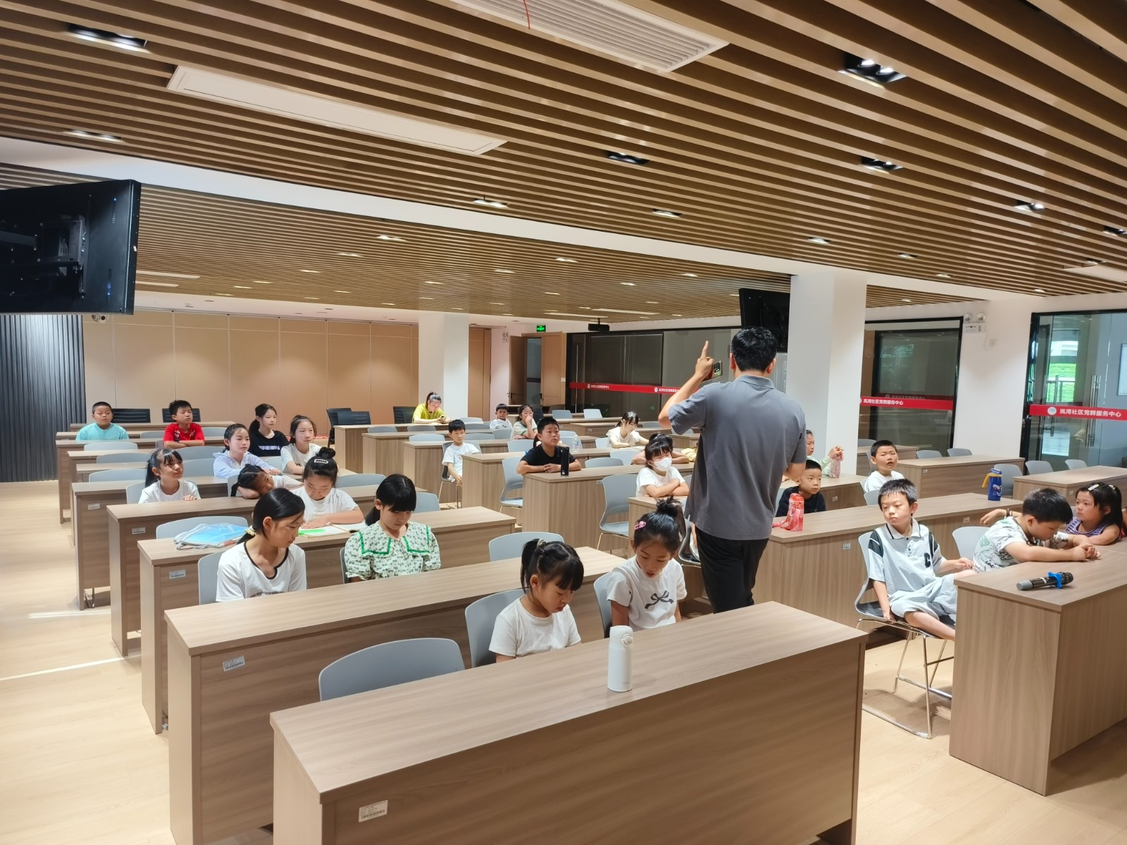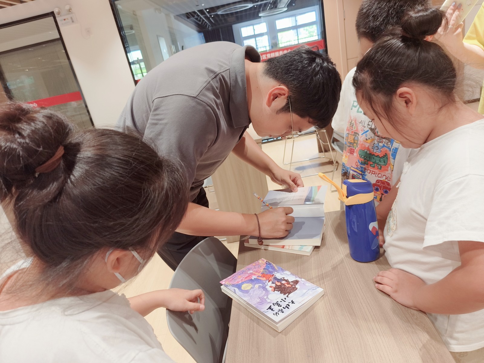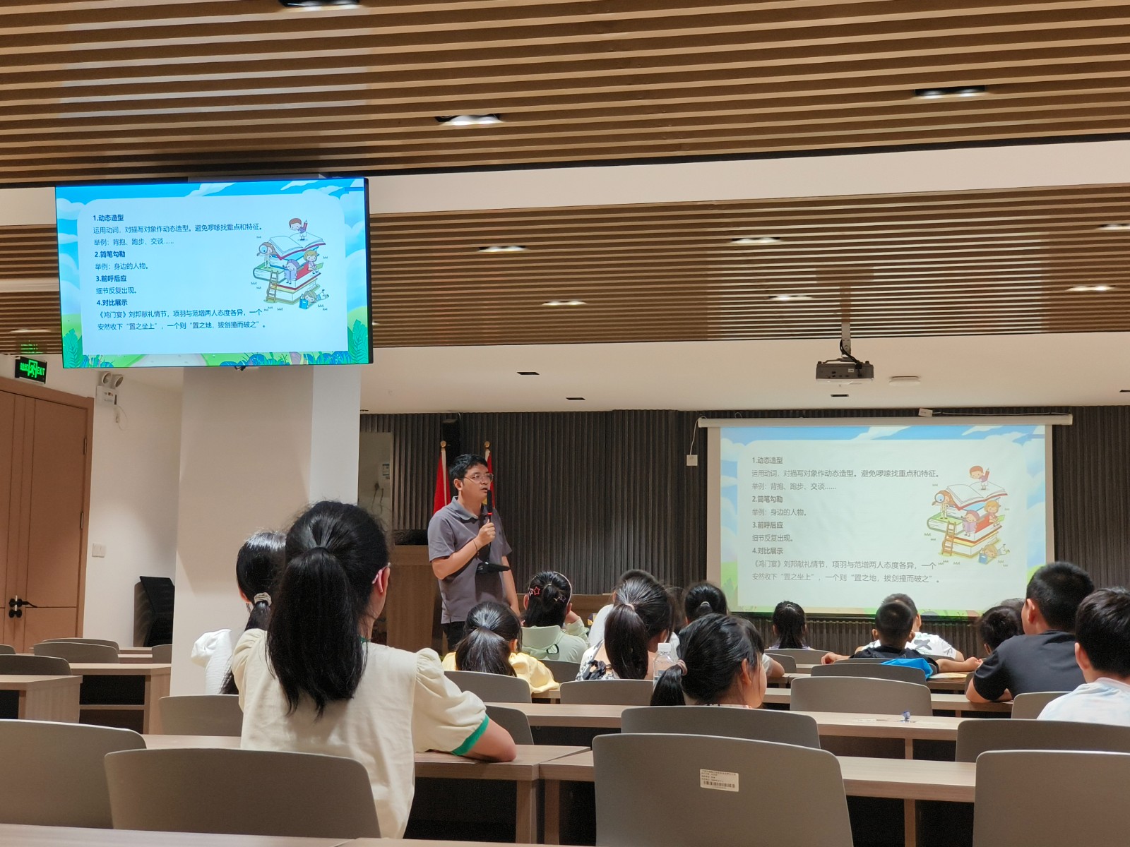 怀着期待的心情有幸邀请到了中国作协会员、镇海区儿童文学作家王轲玮老师到场给辖区的青少年们分享写作心得。关于如何写好一篇构思精致、立意创新的文章成了广大家长、学生的心头大石。日常的作文,离不开人、景、事、物四大主题。上课期间王老师对着一些“痛点”一一举例提问,学生们也纷纷抢答互动。比如以最经典的四大名著等为例,一一展开剖析,让孩子们认识到了写作需要经过艺术的加工,需要更多的细节描写。