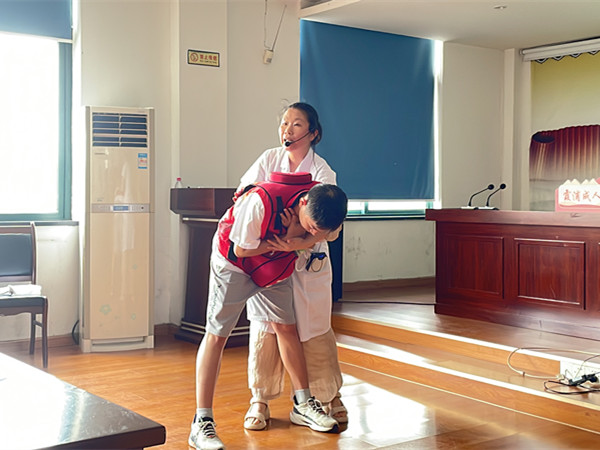 活动现场,医生结合实际案例和急救宣传课件资料,用通俗易懂的语言讲解了心肺复苏救援、海姆立克急救法以及常见突发情况的急救知识,并利用人体模型进行实操示范,就急救操作过程中按压位置、操作手法、基本要领等注意事项作了重点强调。