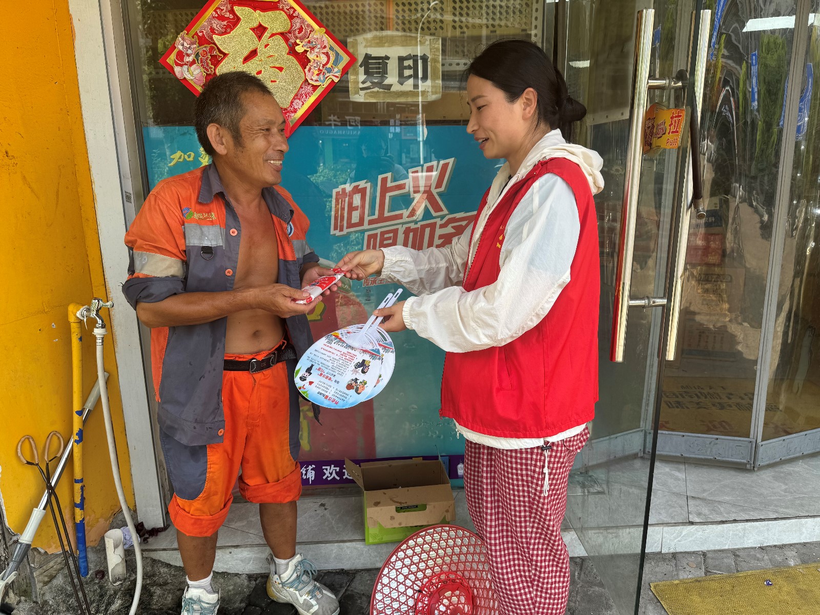 为切实提升环卫工人群体的反诈防骗意识,扎紧守牢环卫工人的钱袋子813日下午,青墩社区党群服务中心在棒冰上贴上“反诈贴纸”,贴心地送到辖区环卫工人的手中,宣传反诈的同时,送去一份清凉。