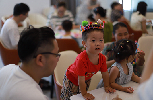 “小朋友们,这是一家人,照片上分别是朱先生、朱太太和两个孩子。看了这张照片,你有什么想法呢?猜猜这会是怎样的一家人呢?”志愿者老师问道。为丰富社区青少年儿童的暑期生活,倡导全民阅读,培养青少年儿童良好的阅读习惯,积极营造爱读书、读好书、善读书的浓厚阅读氛围。 甬江街道万象社区联合江北区图书馆于 83日上午开展了“读经典润童心”暨“以爱之名 为爱加冕”DIY活动,通过亲子绘本阅读让家长们能够更好地了解孩子的内心世界。
