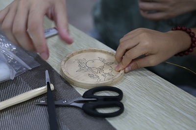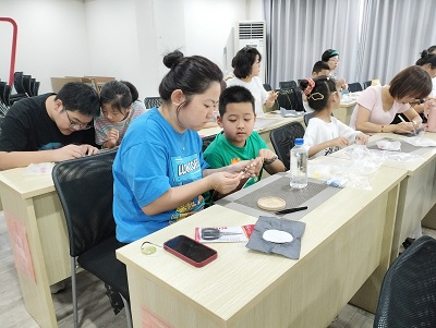 且通过制作法郎杯垫让大家在体验非遗文化的过程中放松身心指导老师为大家讲解掐丝珐琅画的基本知识和制作技巧,在轻松愉快的氛围中学习到非遗文化。随后就到了大家最期待的手工环节啦!活动现场,气氛既轻松又温馨,大家按照讲解步骤和指导要求,开始了自己掐丝珐琅非遗体验之旅。