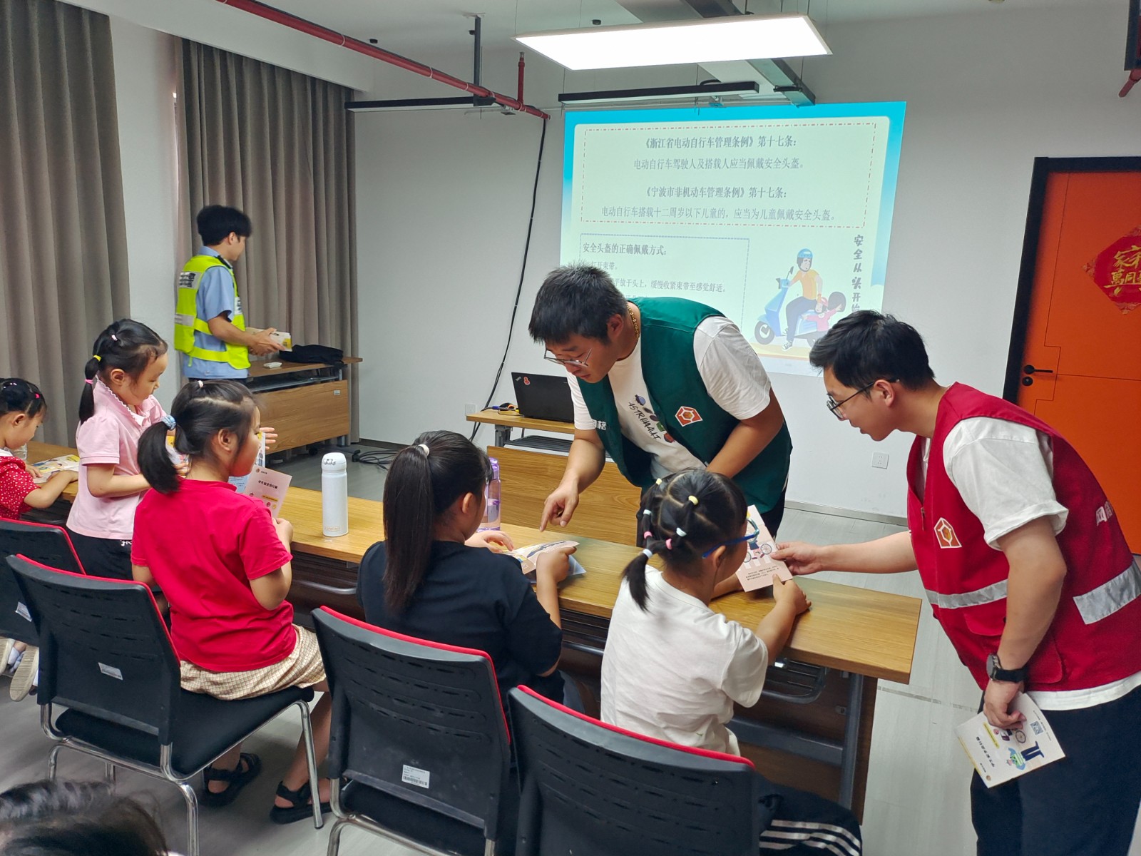近日,河北父亲带娃骑行摔倒遭碾压事件引发社会关注热议,骑行热背后交通安全问题险象丛生。当前社会青少年骑行交通安全问题日益凸显,为有效预防和减少相关事故的发生,8月15日上午,临江社区网格圆桌派邀请镇海区交通警察大队蛟川中队开展“安全出行、快乐童行”交通安全知识小课堂,为辖区青少年们带来一场生动、实用的交通安全教育实践课程。