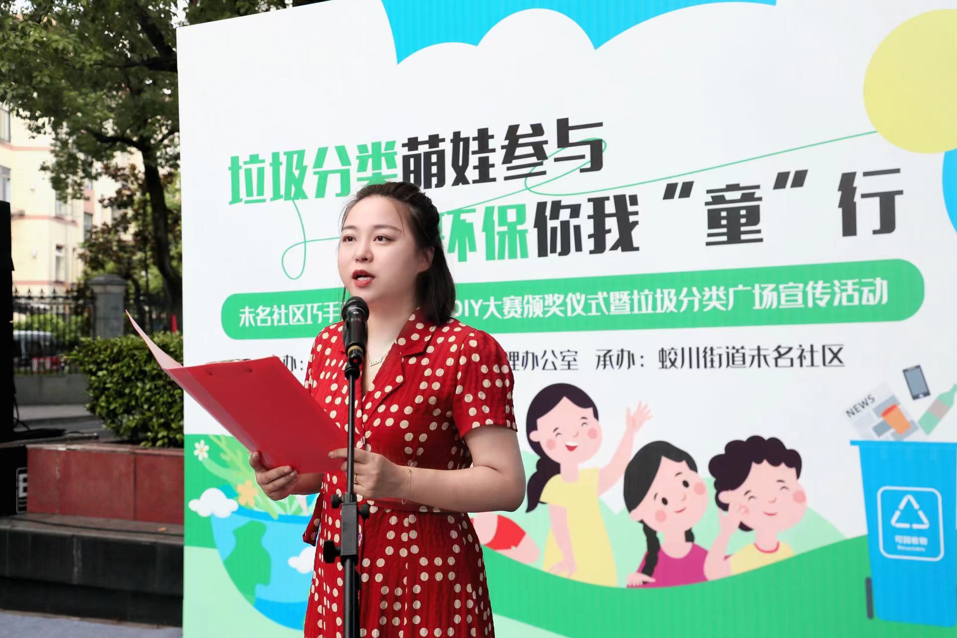 活动当天很荣幸邀请到了蛟川街道办事处副主任殷海珠为活动致辞,她表示希望通过今天的活动,能够进一步激发大家参与垃圾分类的热情和动力从自我做起,从现在做起,从点滴小事做起,将垃圾分类融入到日常生活的每一个细节中做到源头分类定时定点投放让垃圾分类成为社区的新风尚、新习惯