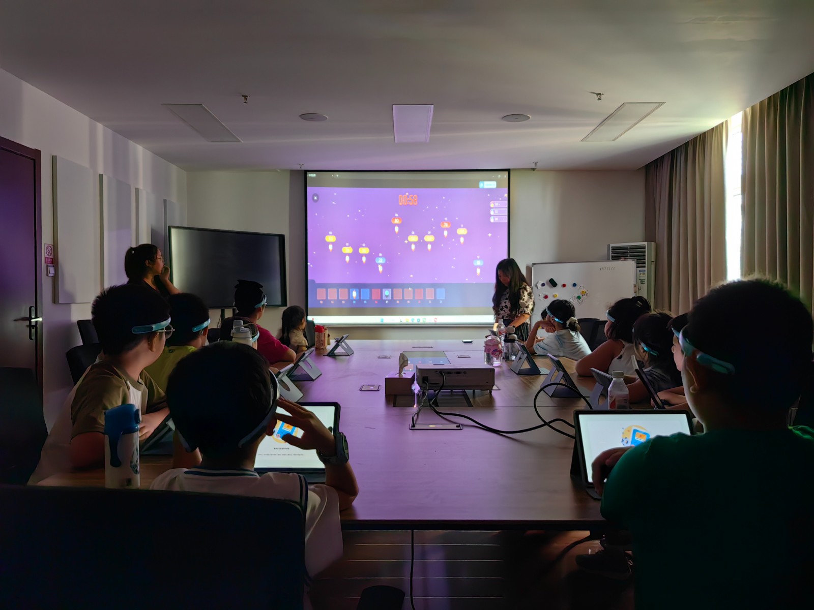 活动当天,社区邀请了认证专注力训练教师李红老师为大家开启AI的课堂。让亲子家庭迅速了解什么是脑机接口,侵入式脑机接口和非侵入式脑机接口的区别,专注力是什么神经反馈是什么以及为什么要学会脑放松听了老师的讲解,大家都觉得很神奇,纷纷表示想要试一试。接下来的红黄蓝三色灯问答、脑控放松、火箭升空和脑力棉花糖等AI游戏一度将现场氛围推至高潮。