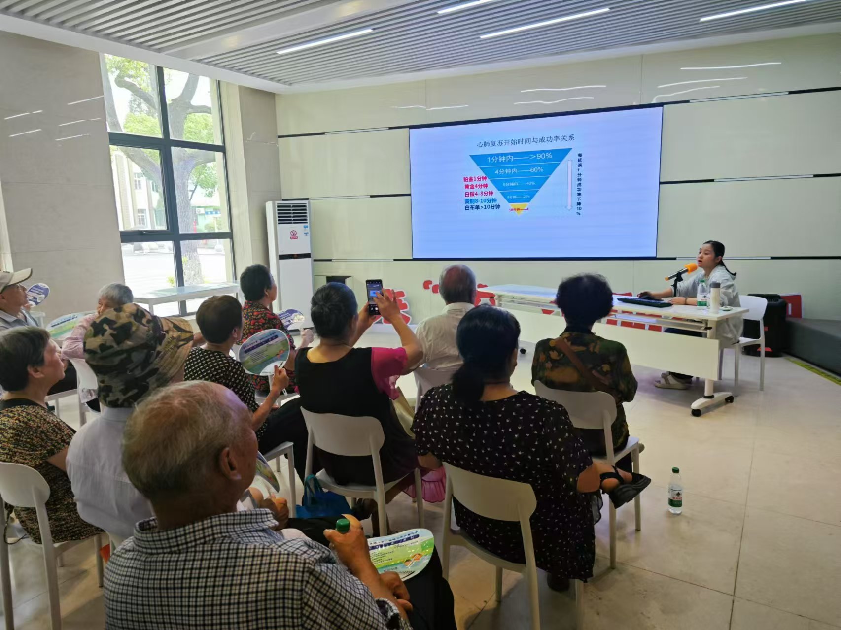 健康安全是老年人居家养老幸福生活的基本条件,为增强老年人安全防范意识,普及健康急救知识技能。827日,未名社区开展了主题为居家养老,家中急救知识分享的老年人应急救援培训,30余名老年人参加了培训.在活动中,社区邀请了经验丰富的炼化医院急救刘丽娜医生担任讲师,确保培训内容的专业性和实用性。医生通过课件和视频,为老年人生动形象地讲解了心肺复苏术、AED的使用方法、气道异物梗阻、海姆立克操作方法等急救知识,课程内容主题鲜明,实用性、操作性强,老人们认真聆听、仔细观摩,现场学习氛围浓厚。本次应急救护知识培训,增强了老年群体的急救意识和应对突发事件时的自救和互救能力,强化了安全意识,让老年人生活中的猝不及防转化为临危不乱。今后,未名社区老年安全课堂将定期开展此类培训,为老年人的生命健康保驾护航。