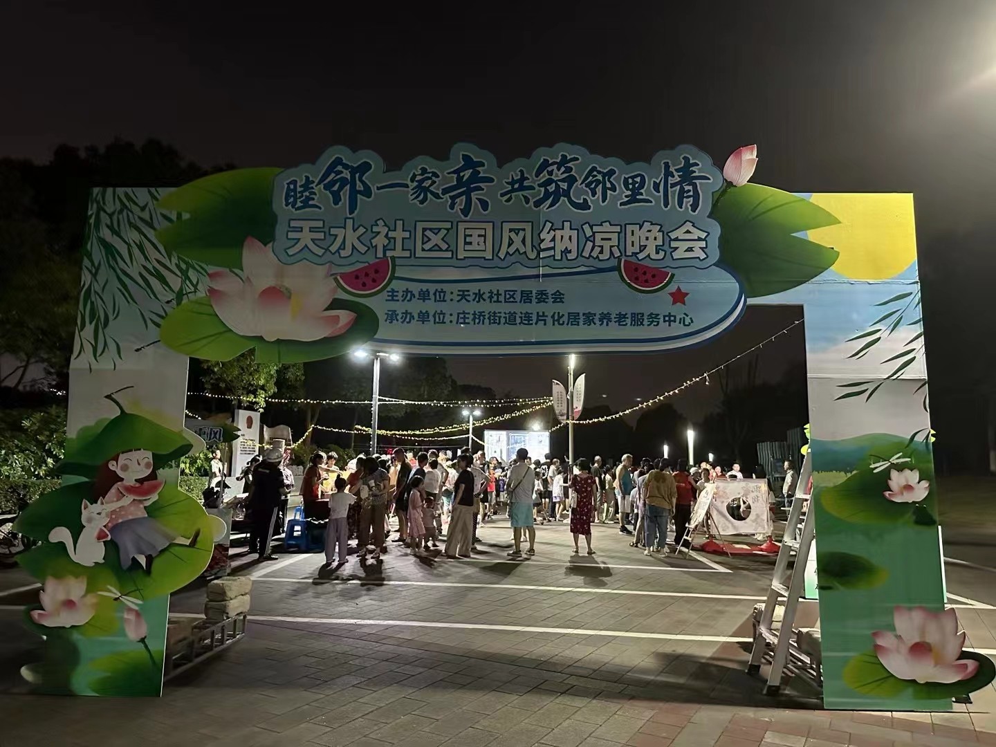 为进一步提升社区服务,完善社区服务机制。24日晚上,天水社区居委会与庄桥街道连片化居家养老服务中心携手亚太物业等商圈共建单位联合社区网格志愿服务队伍,在辖区网格阵地---新三江口公园开展了以“睦邻一家亲,共筑邻里情”为主题的天水社区国风纳凉活动,回应了居民日益多元化的服务需求,进一步加深邻里间的情感交流,弘扬中华优秀传统文化,让居民在享受清凉夏夜的同时,感受国风的魅力与韵味,