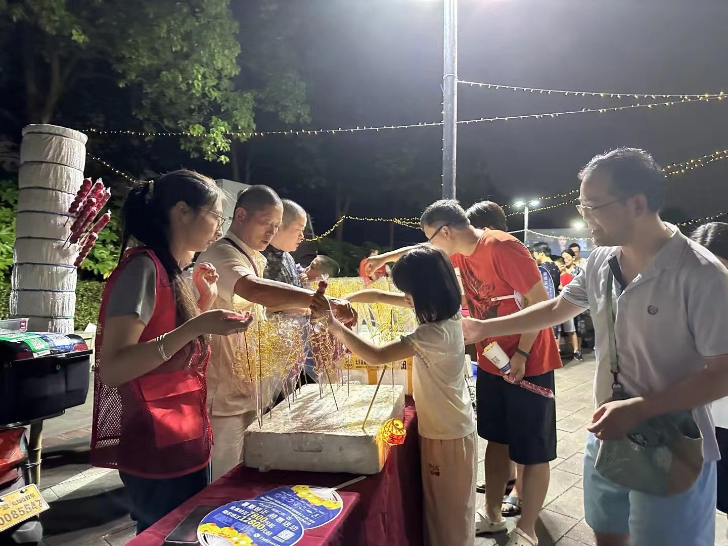 美食摊位前更是热闹非凡,糖画、糖葫芦、爆米花、冰粉、酸梅汤、双皮奶,一份份美食在街坊邻居的欢声笑语中传递,见证着天水社区居民们的美好生活。