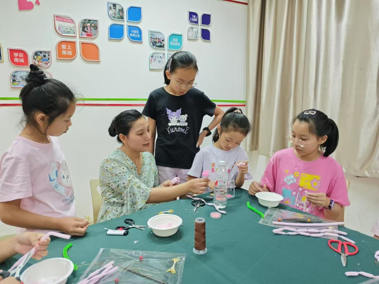 米粒学院---江北区家门口青少年宫公益课8月27日上午在长兴社区开展非遗手作活动——绒花制作。这一承载着千年文化的传统手工艺品,以其独特的艺术魅力和吉祥寓意,吸引了众多青少年的热情参与。