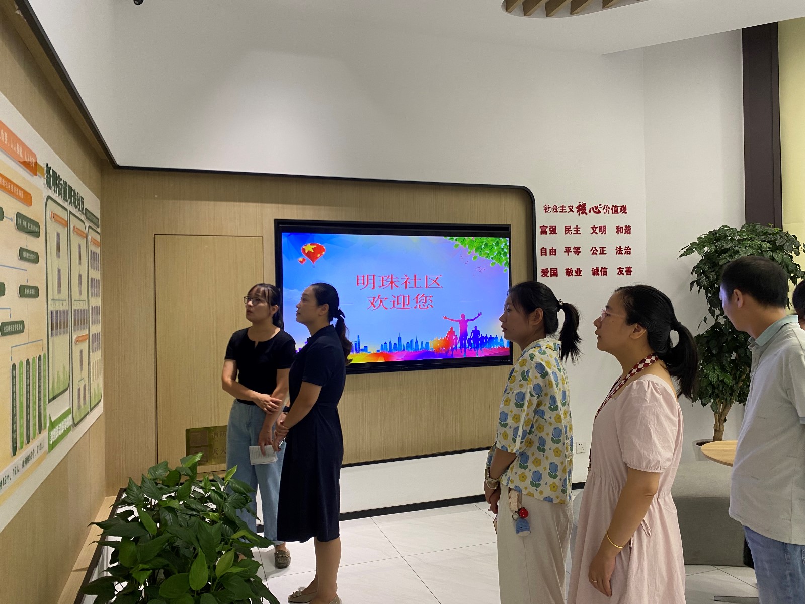 92日,青墩社区党群服务中心全体工作人员到高新区明珠社区,就社区阵地建设开展参观学习。
