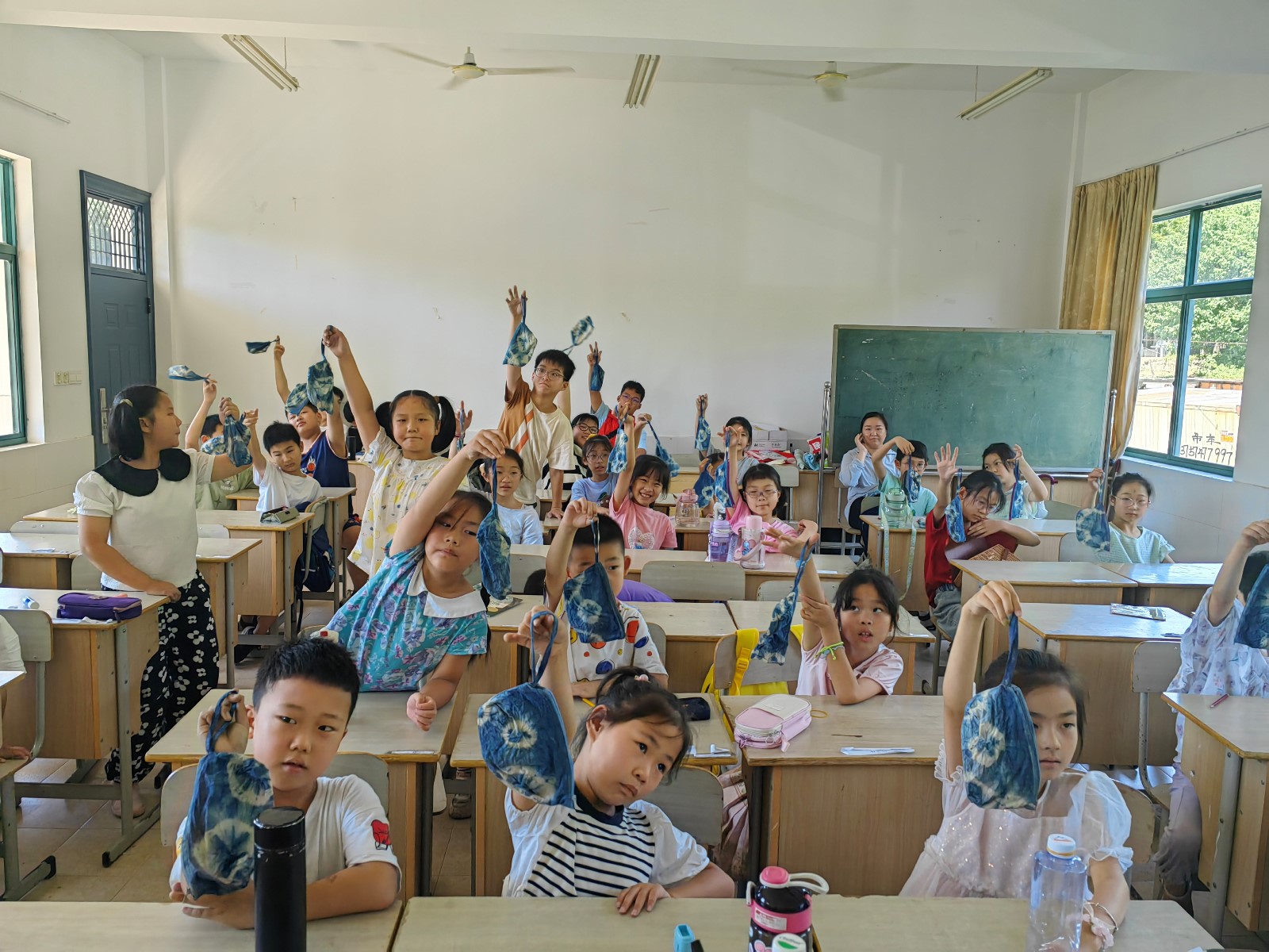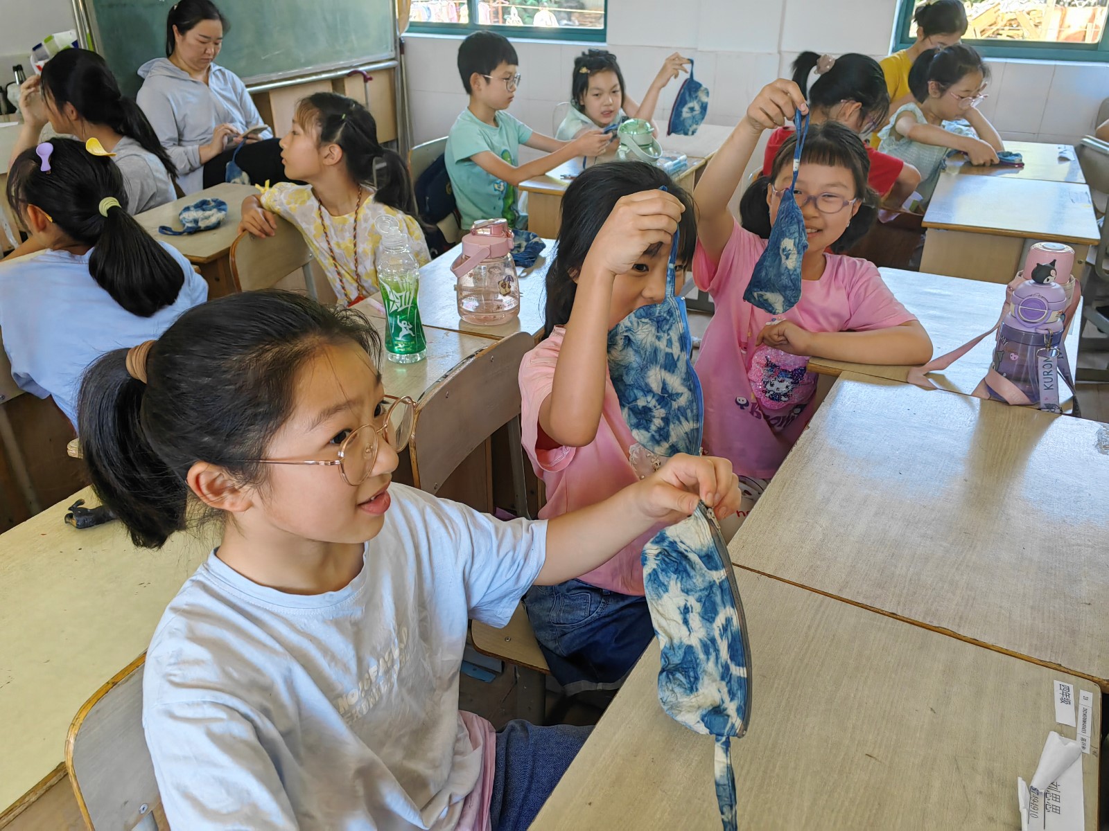 “一块布,一扎皮筋,多彩的染料和孩子们充满创造力的童心相互碰撞,每一幅扎染作品都犹如独一无二的画卷,希望孩子们在扎染的过程中可以激发了他们对中华优秀传统文化的兴趣和自豪感。”授课教师王丽表示。