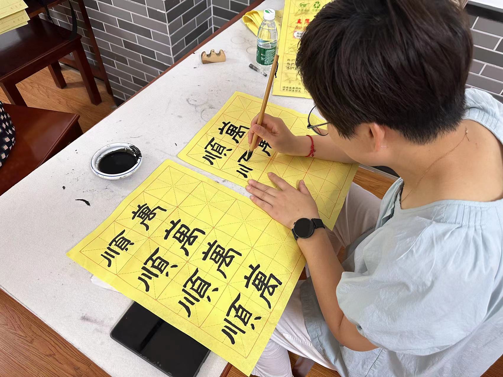 七八月份正值炎炎夏日,然而有这样一群人,他们不惧骄阳酷暑,在每周三的下午准时准点来到骆驼成校,只为心中对书法的喜爱。此次书法课是“蕙生活-她尚学”女性素养提升系列课程中的一项内容,面向骆驼街道女性,共开设六节课程。