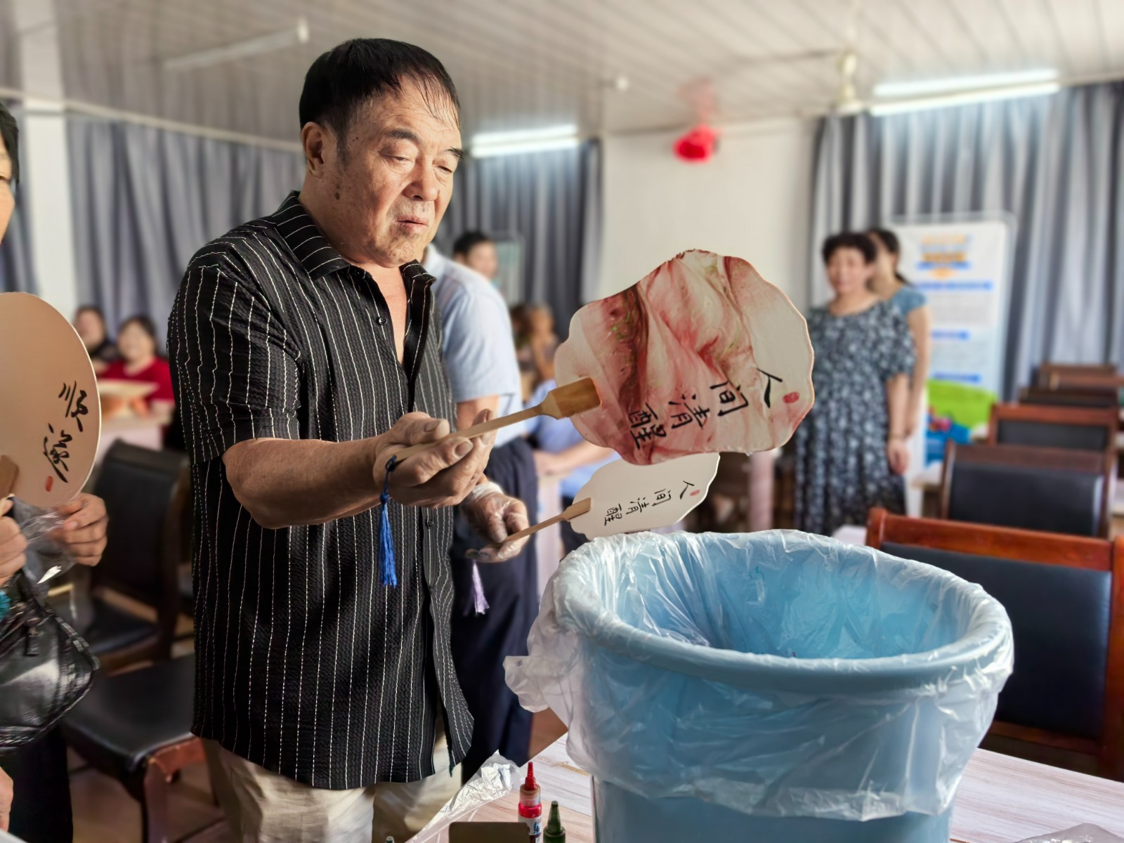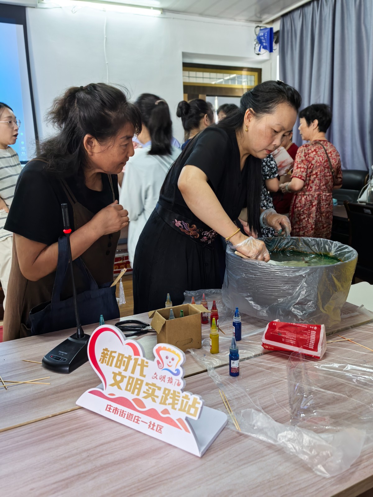 活动现场,居民们共同体验制作精美扇子的乐趣。这次活动特别引入了传统漆扇的制作工艺,让居民们亲身感受到了中国传统工艺的魅力。大家纷纷动手,用心制作出一把把独具匠心的扇子,这些扇子不仅色彩斑斓,而且富有光泽,每一把都像是艺术品。通过制作漆扇,居民们不仅展现了自己的创意和才艺,还深刻体会到了传统文化的深厚底蕴。