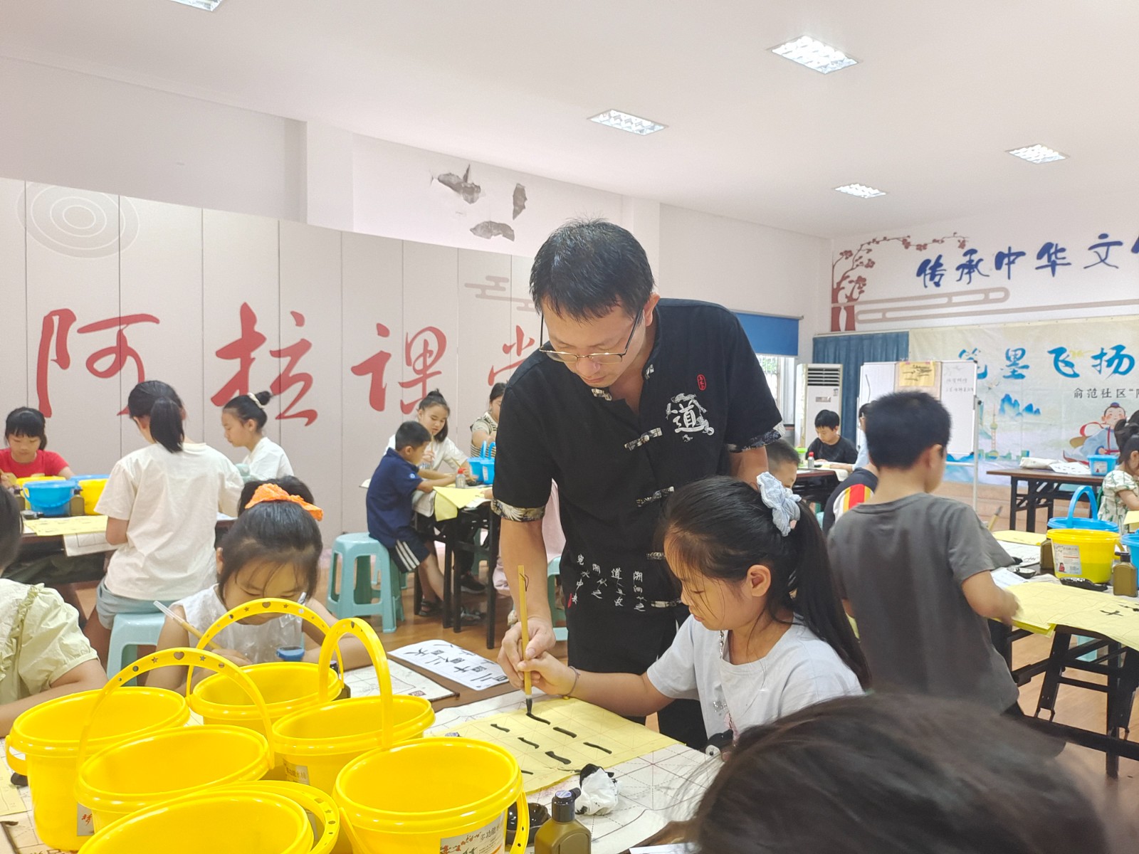 本次书法课程特别邀请了社区书画社的资深老师王志平为学员们授课。王老师凭借其深厚的书法功底和丰富的教学经验,为孩子们带来了一场别开生面的书法盛宴。他不仅详细传授了书法的基本知识和技巧,还通过现场示范和指导,让孩子们亲身体验到了书法创作的乐趣。