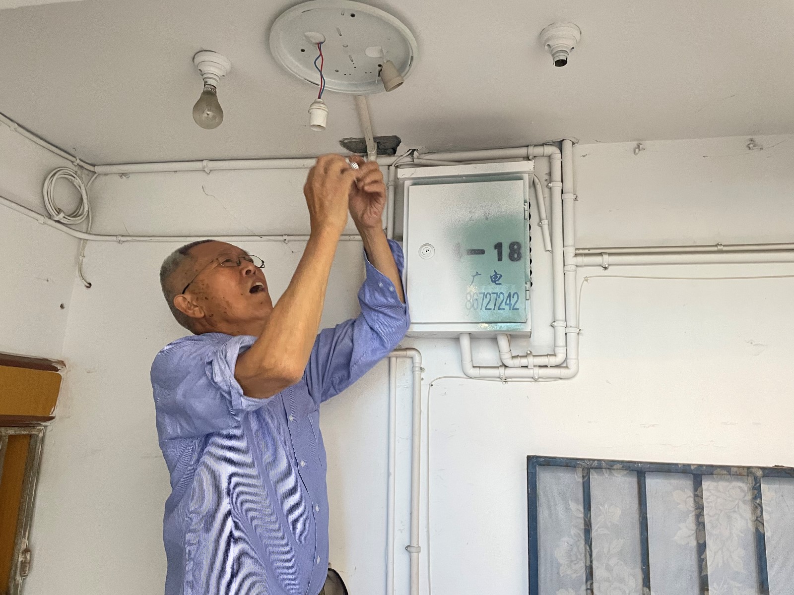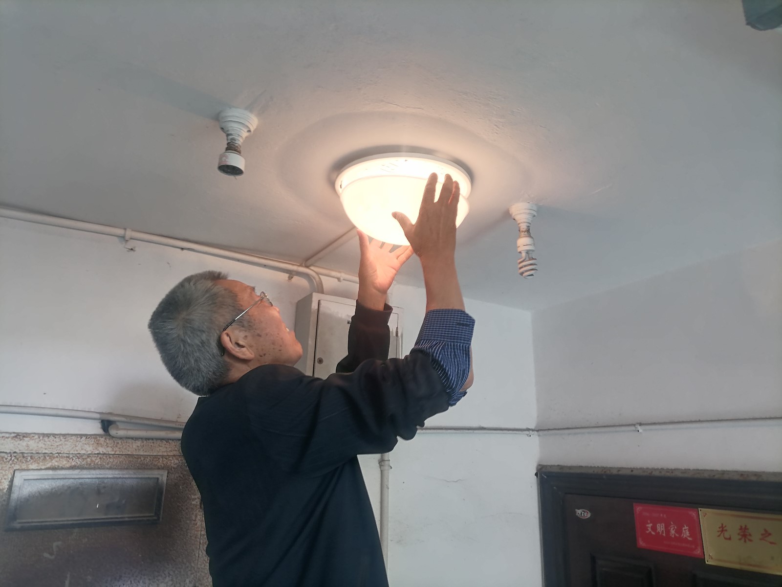 经过长时间的走访,社区工作人员发现很多老人因为节俭,购买的多是低档甚至杂牌商品,质量较差。郑信根深知居民的难处,对于一些小物品的修理,他经常做到这里切割一点,那里补上一节,改装一下,尽量保证能用,帮居民们省钱。服务社区居民,最累最难的事情之一就是管道疏通了。很多老小区厨房、卫生间面积很小,尤其是夏天,密不透风的环境增大了难度。老郑就把橱柜打开,七十多的老人打着手电钻进去、趴在那里帮居民修管道。居民的房屋管道老化给疏通工作带来了难度,老郑却用手一步一步耐心地将管道疏通好。