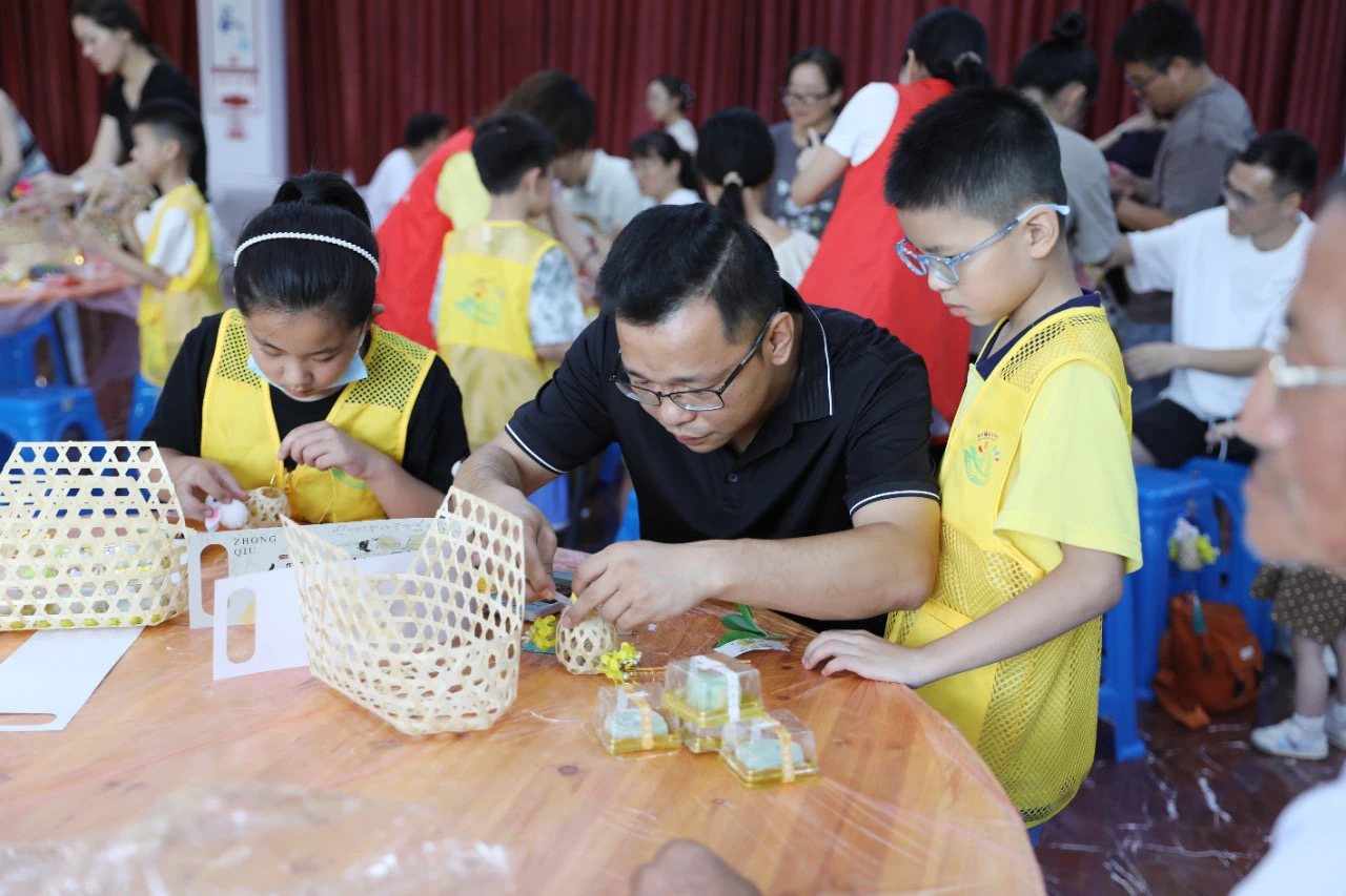 紧接着,在彭桥村竹编艺人——黄伟强的带领下,一根根竹篾仿佛被赋予了生命,亲子们紧随其后,一个个精致实用的竹编作品逐渐成形。大家将亲手制作的月饼装入自己编织的竹编盒中时,那份成就感与自豪感溢于言表。