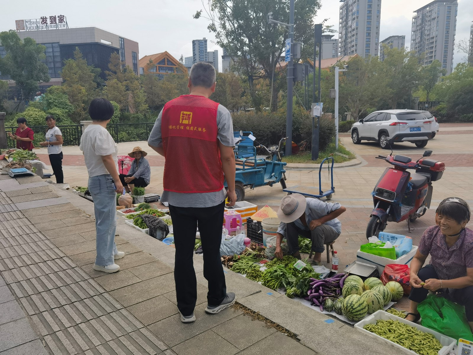 “台风明天就要来了,大家把放在门口的物品都转移到屋内,关紧门窗......”“阿姨,你们明天不要来摆摊了哦,台风要来了。”网格员们深入各个小区和商铺,对小区内的树木进行了检查,排查那些可能在台风中倒伏的树木,防止树木倾倒砸伤行人或损坏车辆,同时提醒大家尽快回家防台,及时关闭家中门窗和电器,切勿在台风期间出门。除此之外,社区联合物业着重查看了小区周边河流的水位情况,以防出现内涝。