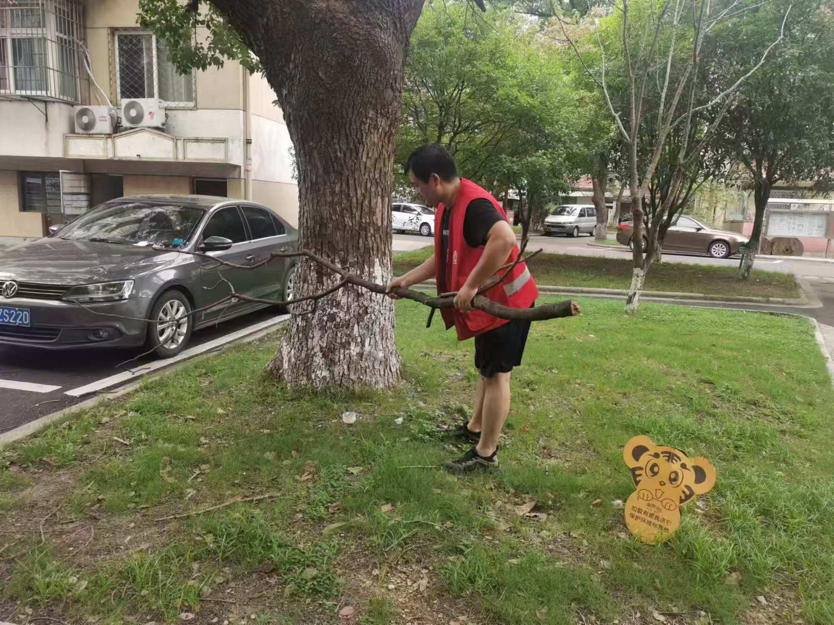 防台应急相应发出后,未名社区第一时间启动应急预案,成立防台风工作领导小组,明确职责分工,确保各项防御措施落实到位。网格长深入辖区各个角落,对老旧房屋、广告牌、电线杆、树木等易受台风影响的设施绿化进行全面排查,及时消除安全隐患。