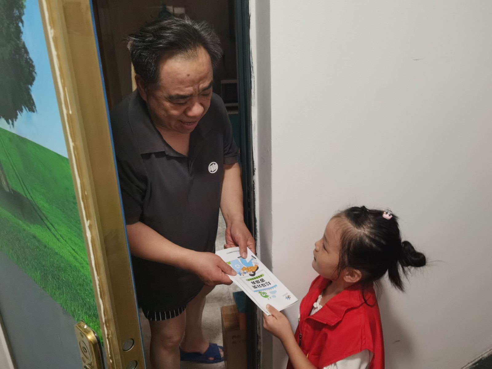 网格员们和家长的陪同下,通过上门入户的形式,亲子不仅向居民详细介绍了垃圾分类的意义、分类标准及投放要求,还通过趣味问答、发放宣传册等方式,让垃圾分类的知识在轻松愉快的氛围中深入人心。小朋友们更是化身“小小宣传员”,用稚嫩却坚定的声音传递着环保的种子用实际行动为社区环境的美化贡献自己的力量。