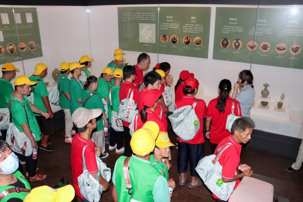 健身包、水杯、小黄帽,主办方为每位残疾人精心准备了健身装备。下午2点,在上林湖栲栳山停车场,有“备”而来的慈溪市各地50余名残疾人在这里集合,踏上健身之旅。列队步行前往上林湖越窑博物馆,沿途边前行边欣赏美丽的风光。