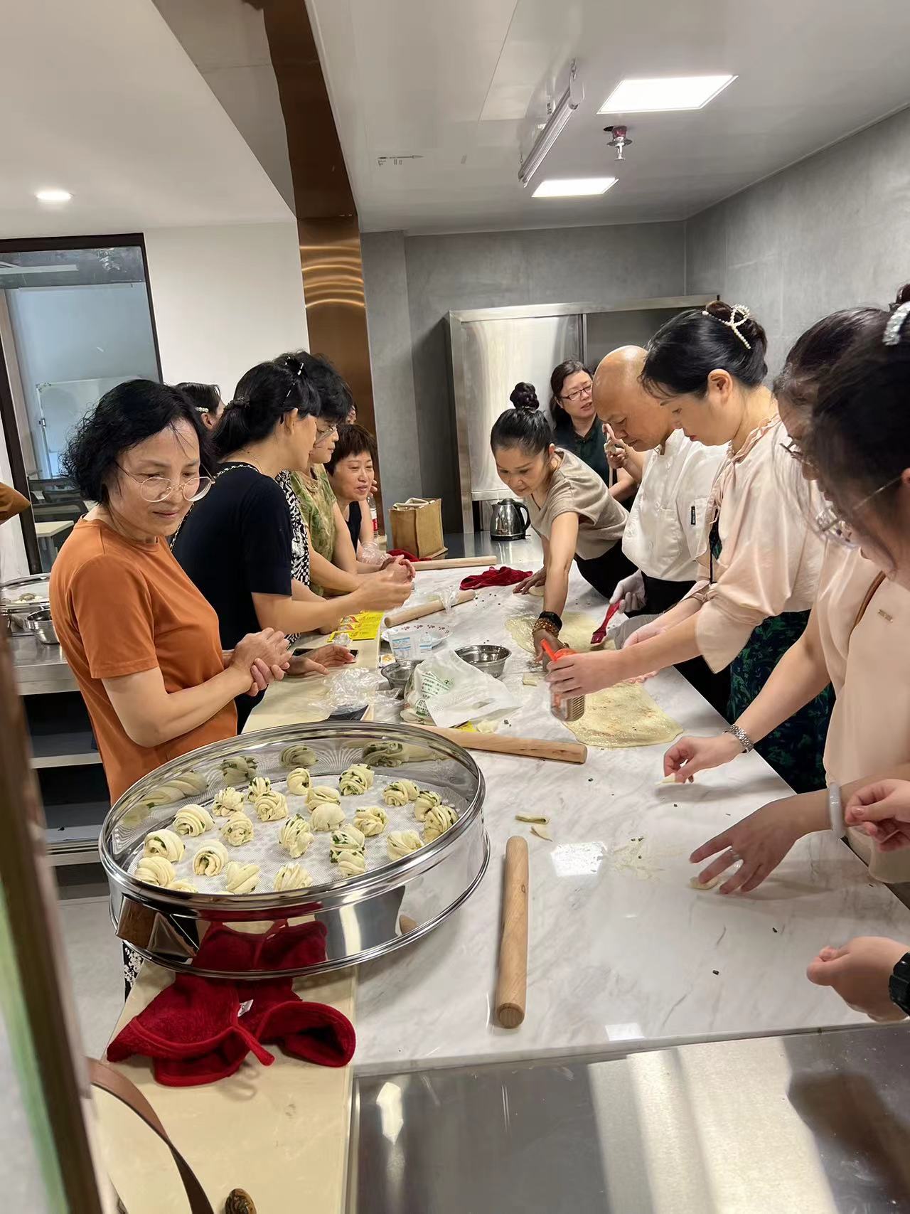 面点烘焙班的学员们忙忙碌碌,从和面、发酵、塑形到最后的蒸煮,学员们乐此不彼,最后品尝自己亲手制作的美味花卷。