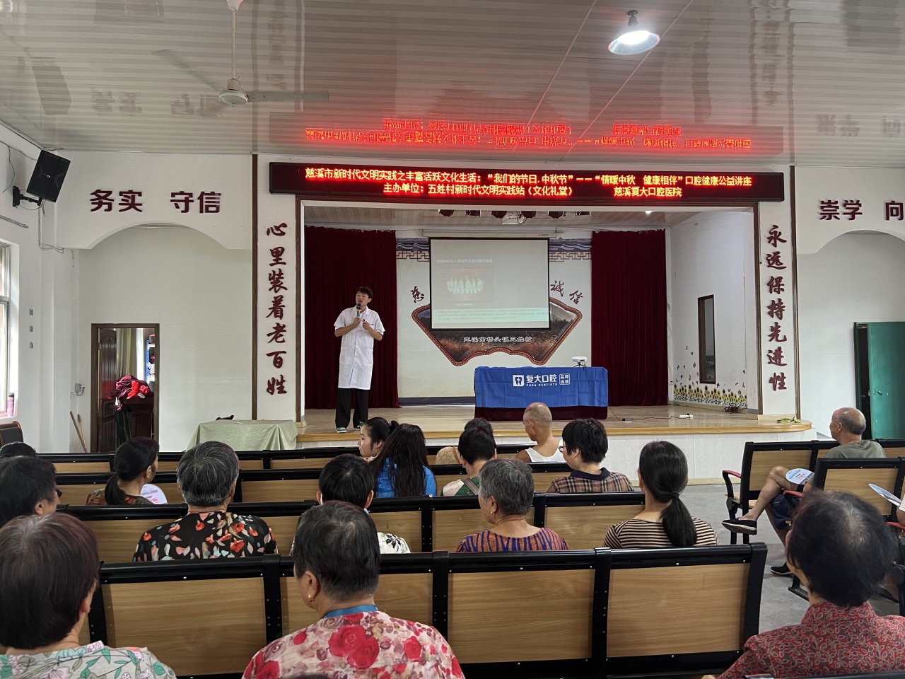 五姓村联合慈溪复大口腔医院开展“我们的节日·中秋”之“情暖中秋  健康相伴”口腔健康公益讲座。