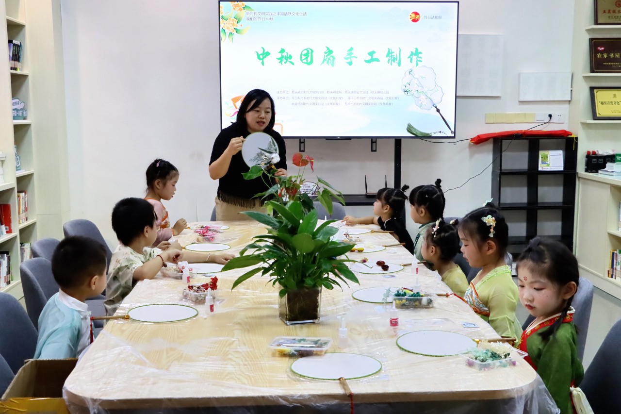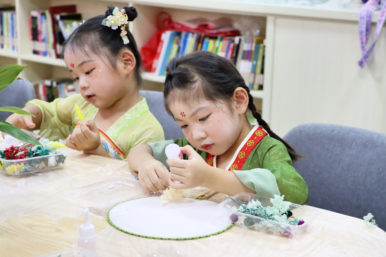来自桥头镇幼儿园的小朋友们在表演节目之余,还体验了永生花扇子和月饼制作,在活动中感受节日氛围,加深对中秋传统习俗的了解。