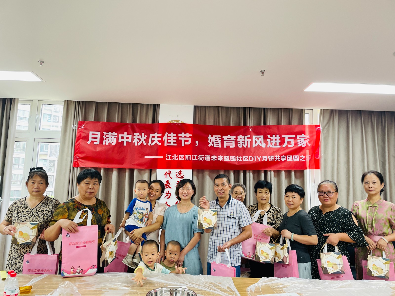 居民们聚在一起,制作手工月饼,经过老师的细致讲解,大家动起手来,专心地揉面团、包馅,很快,一个个精美的月饼就诞生了。值得一提的是,活动现场,网格员还向居民进行了婚育新风宣传,倡导大家树立正确的婚育新风观念,养成健康科学的生活,营造了健康江北的氛围。