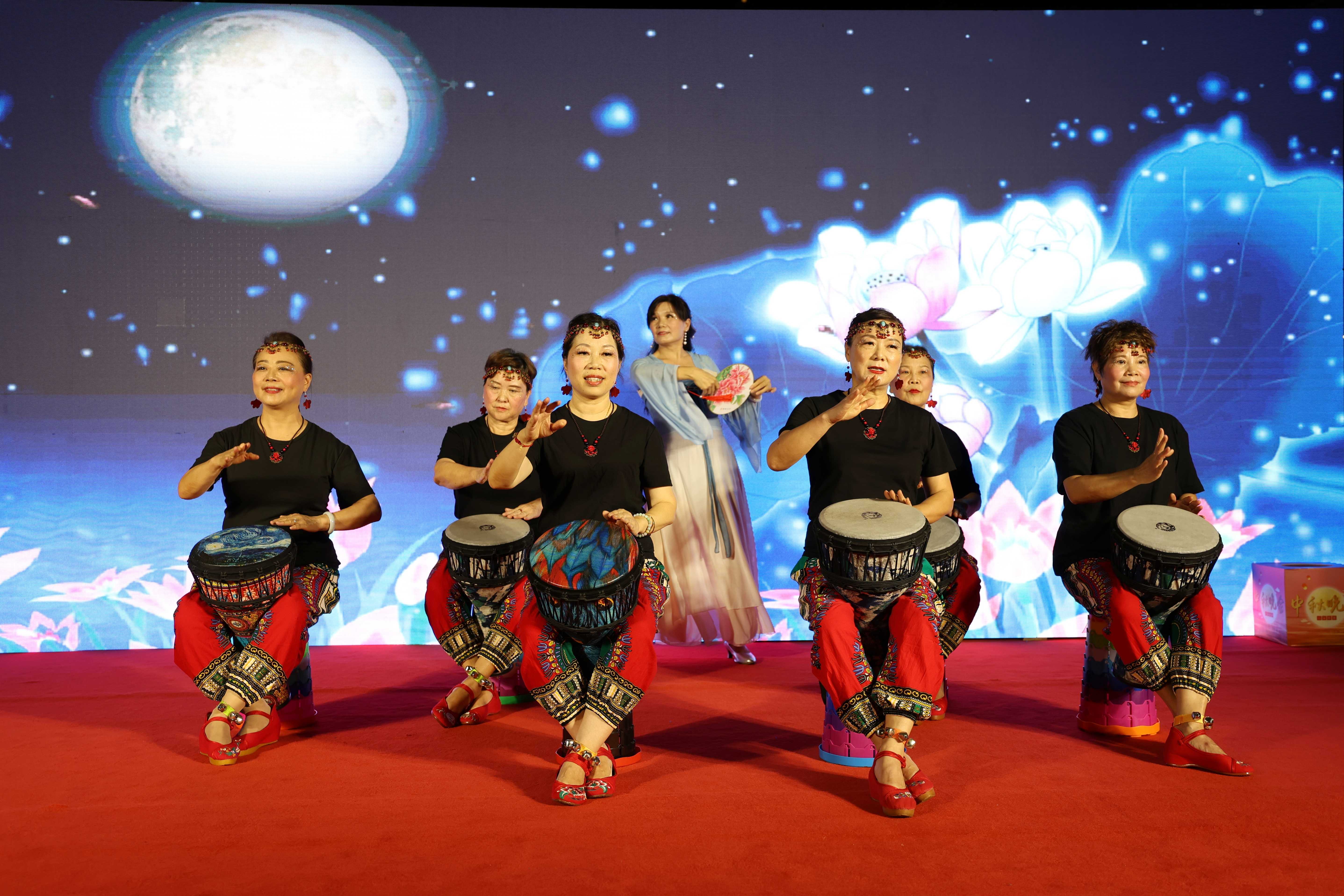 另一边的舞台上也热闹非凡,文艺团队纷纷拿出了自己的精彩节目前来助阵。有天悦家园来阿姨的二胡独奏《良宵》,河西老年大学时装队的时装走秀,还有江北区敲响非洲鼓艺术团的非洲鼓表演《花好月圆夜》、萨克斯独奏。传统乐器与西洋文化相互碰撞,精彩节目轮番上演,收获了现场的阵阵掌声。