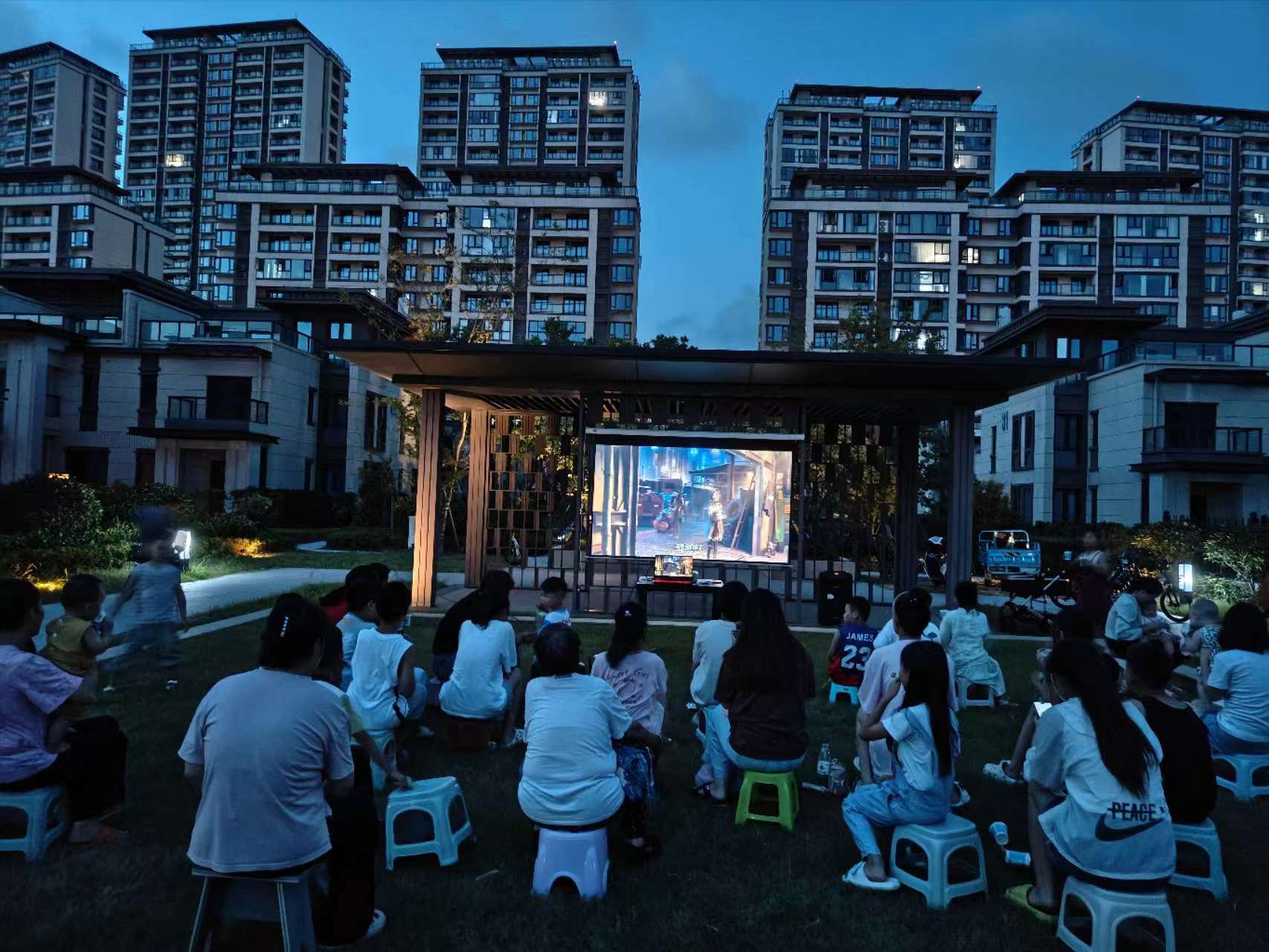 “快走,电影快开始了!”“有爆米花呀,快来快来!”随着一阵阵欢声笑语,9月24日,小区电影节在这个秋高气爽的夜晚拉开了帷幕。