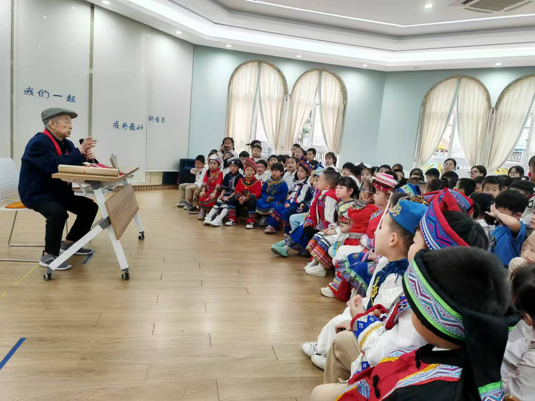 迎国庆颂党恩,为全面贯彻“爱国教育从娃娃抓起”的理念,铭记红色历史,弘扬民族精神,在国庆佳节来临之际,为传承红色基因,弘扬红色文化,团结民族精神,筑牢孩子们童心向党,热爱党的思想根基,9月25日上午蛟川未名社区联合石化海达幼儿园开展“小小石榴籽,悠悠爱国心,听爷爷讲过去的故事”红色故事分享活动,社区网格长邀请了社区90岁高龄老党员陶加民爷爷给幼儿园少数民族孩子及大班幼儿讲述他参加红色故事
