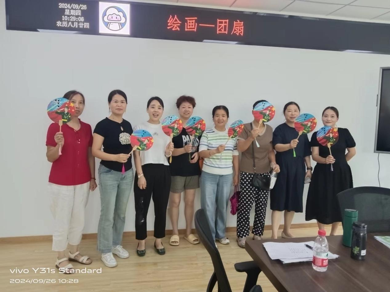 现场老师亲身详细讲解了色彩的搭配、放置方式、扇子入水手法等,并做了示范。居民们也充分发挥自己的创意和想象力,一幅幅清新淡雅的团扇作品在每个参与者"巧手"下诞生了,本次活动不仅让社区居民们在欢乐和谐的氛围中体会亲手绘制扇子的乐趣,也领略到了传统艺术的深厚底蕴与内涵。