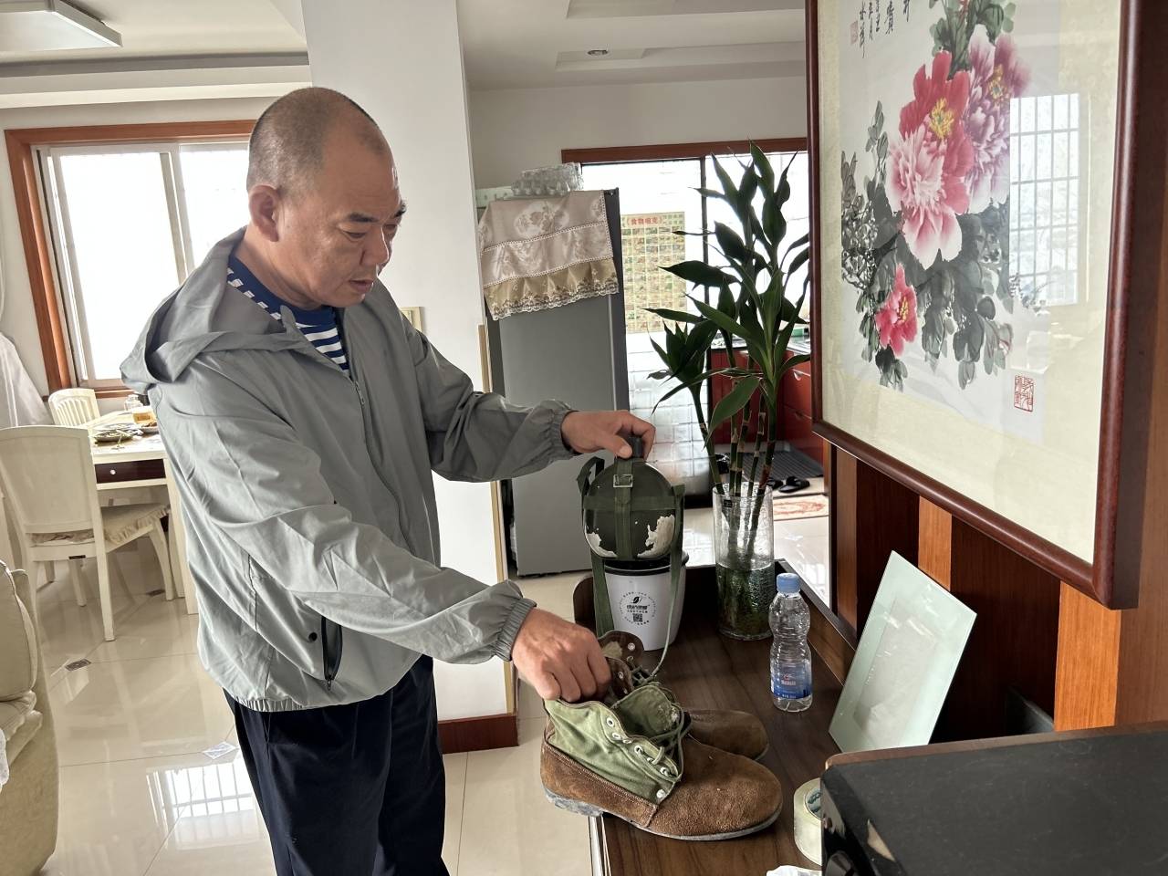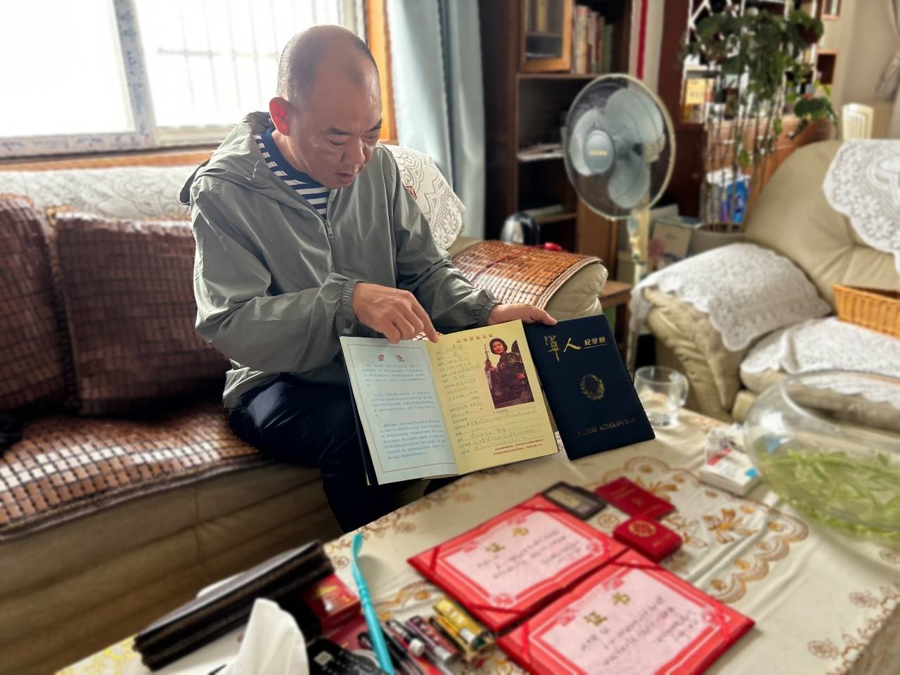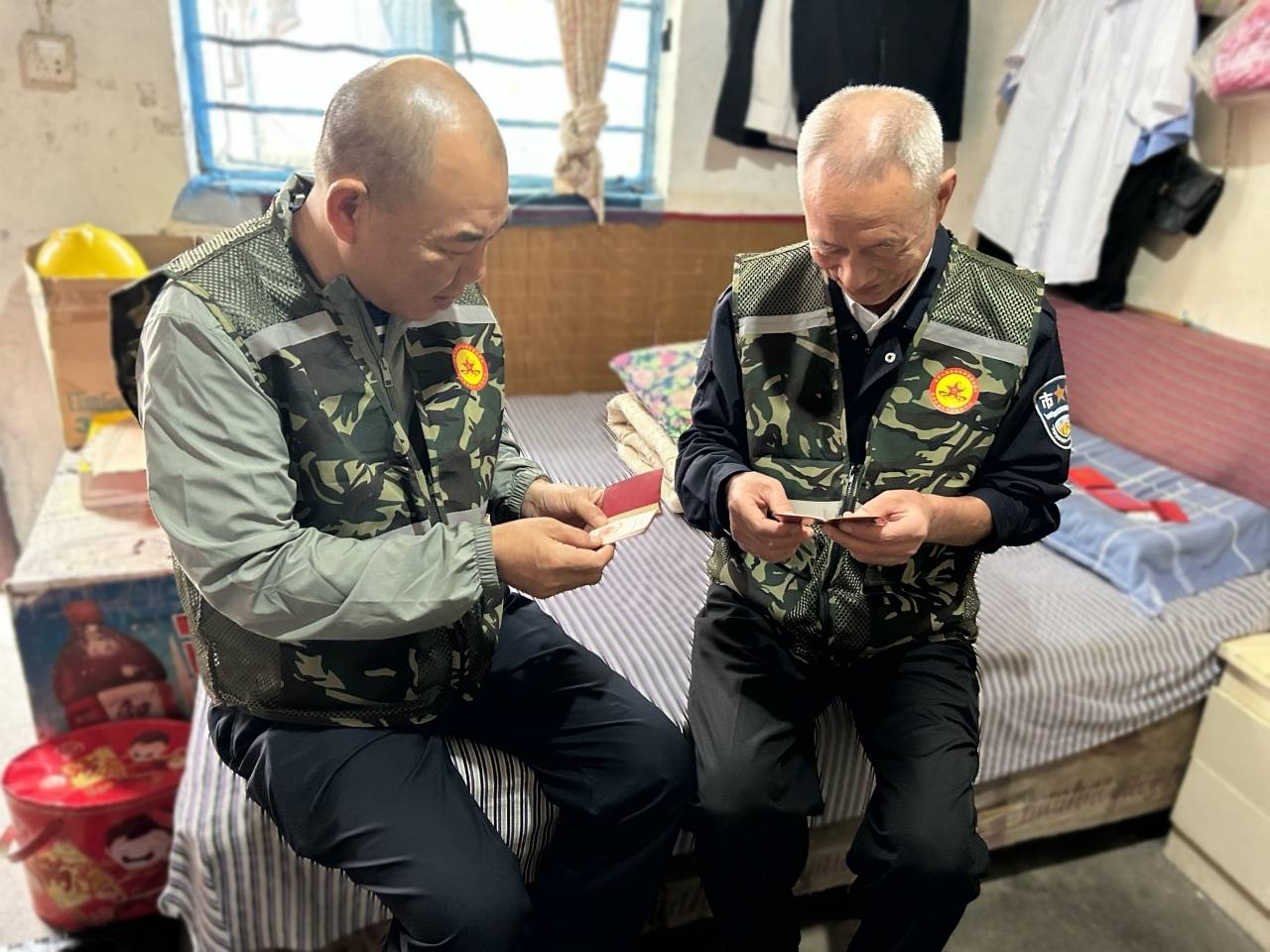 随后,社区工作人员王建君走进了退伍老兵宋胜军和刘厚锋的家中了解他们老物件背后的故事。