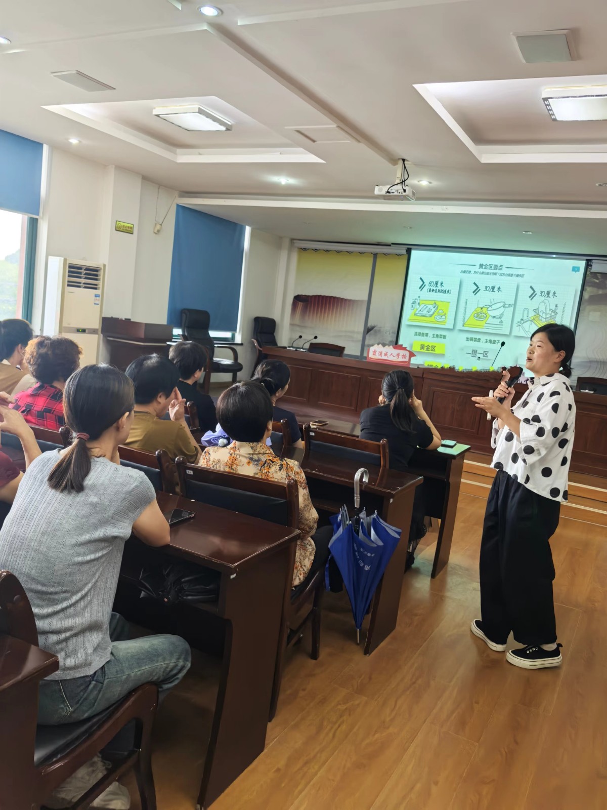 培训现场,舒理家(宁波)文化传播有限公司的收纳整理师蔡依芬、诸赛赛讲解了整理收纳的社会需求、重要性、基本原则用通俗易懂的语言,从美学的角度结合生活实例,向与会的女性居民详细讲解了如何具体进行家居收纳和厨房收纳的知识