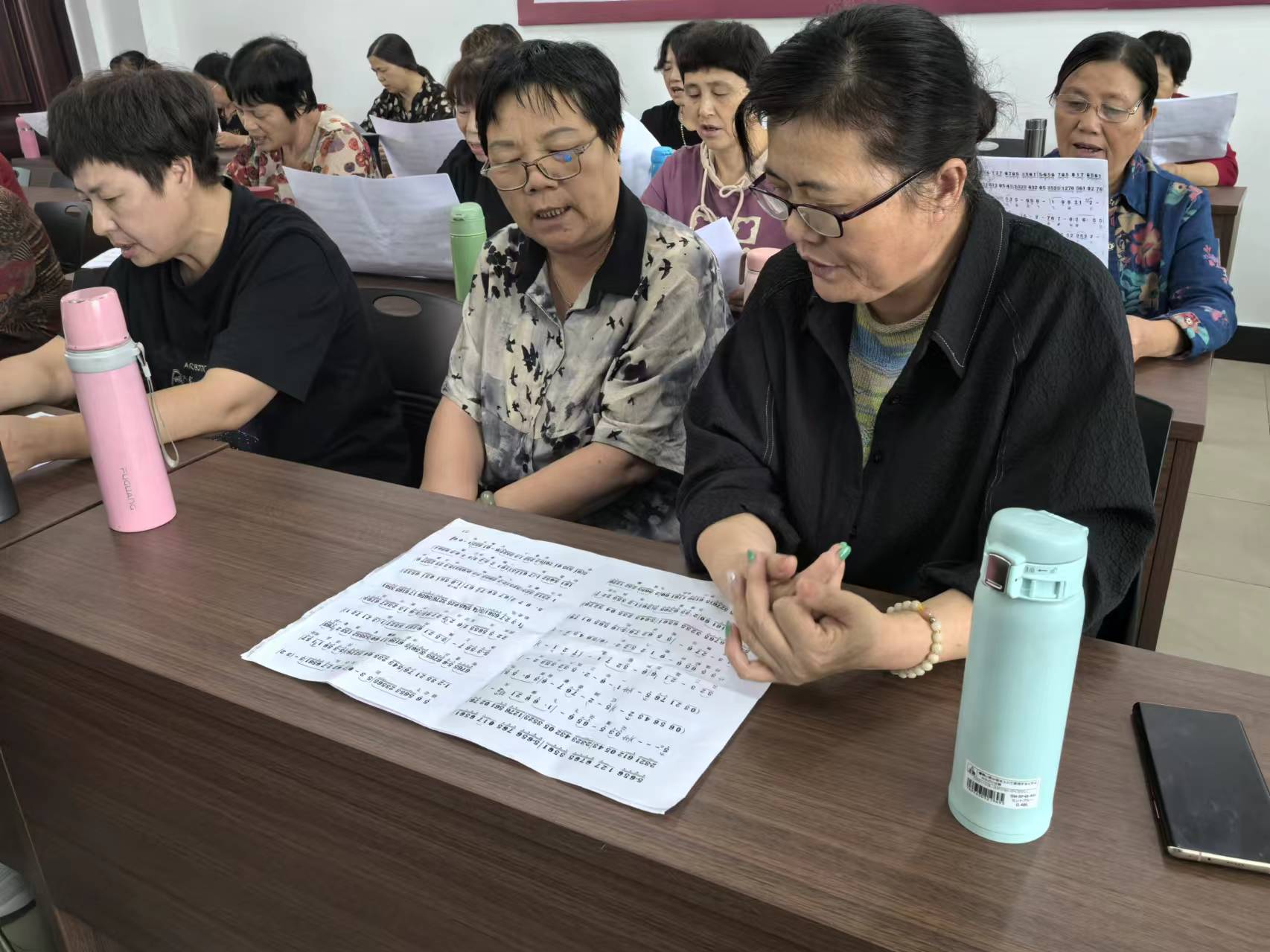 传唱经典,越音飞扬 ——戏曲培训走进横河成校老年大学。课程一开始,胡晓萍老师就和戏曲爱好学员们相互交流,请爱好者先演唱,再指出其中问题,最后进入集体授课演唱。胡老师一边讲解,一边示范演唱,她从最基础的咬音等开始教学,一句一句地领唱,为大家调音,认真严谨的教学态度让很多学员动容,大家学得十分积极。