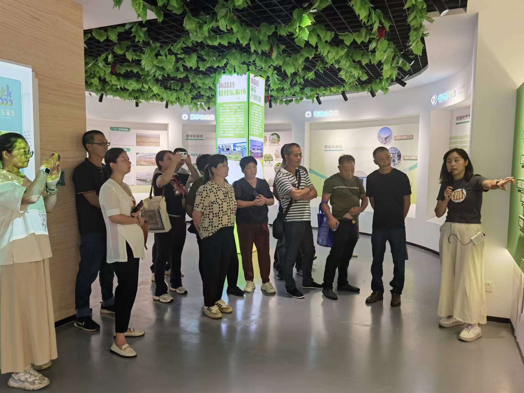 此次种葡萄植栽培管理技术高素质农民外出观摩培训主要围绕葡萄的品种选择、土壤管理、修剪技术、病虫害防治、水肥管理、采收与储运等多个方面内容。邀请了葡萄种植领域的专家和经验丰富的技术人员进行授课,聆听高级农艺师潘浩亮的“山果湾葡萄品牌建设历程及日本三产融合的学习经验分享”、嘉兴农创客秘书长“慈溪嘉兴两地深入交流葡萄产业拓展发展新思路”、嘉兴市葡萄协会会长朱屹峰“嘉兴葡萄产业优势及关键技术”、等讲座。在培训过程中,种植户们参观了当地的几个先进种植基地。爱比利山果湾休闲农庄负责人朱生花、大圣果蔬沈金跃、乡村工匠名师周卫中、海盐胜利农场“共富工坊” 陈兵等基地负责人为学员介绍了现代化的种植技术和管理模式。学员们认真观察、仔细询问,与基地负责人和技术人员进行了深入的交流和探讨。