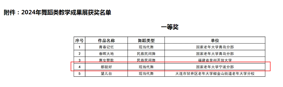慈城成校选送作品获评国家老年大学全国老年教育舞蹈类教学成果展一等奖