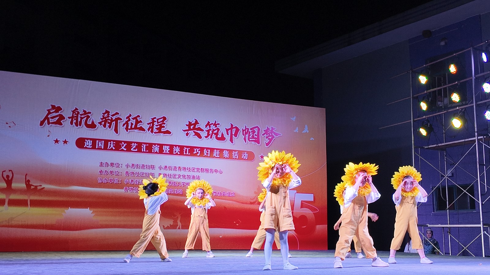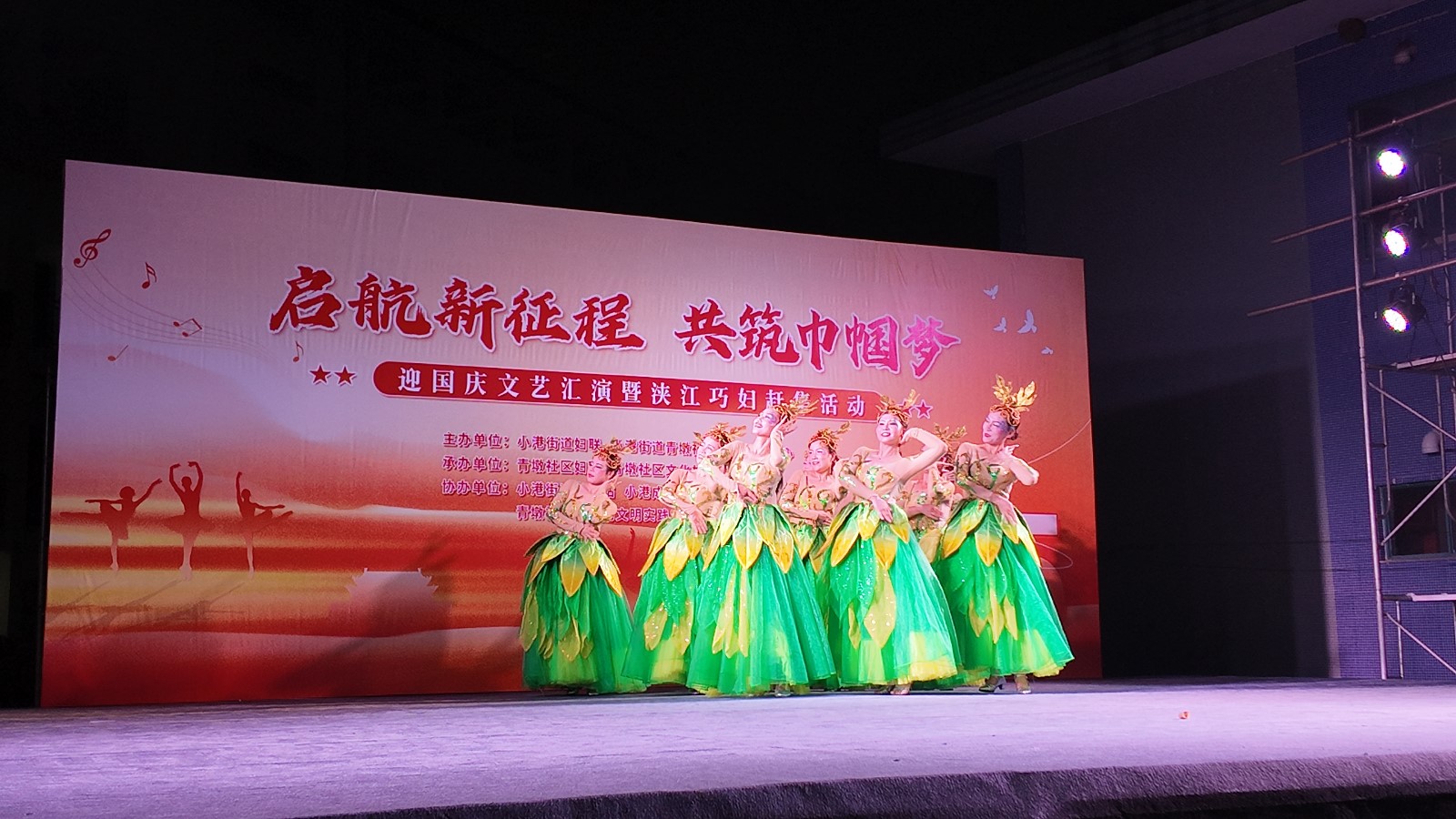 为庆祝中华人民共和国成立七十五周年,弘扬爱国主义精神,弘扬民族优秀传统文化,本着心系群众,服务于民的宗旨,让社区居民享有更加充实、更高质量的精神文化生活。青墩社区党群服务中心于2024929日晚上,在小港成人学校举办了“启航新征程 共筑巾帼梦”国庆文艺汇演暨浃江巧妇赶集活动。